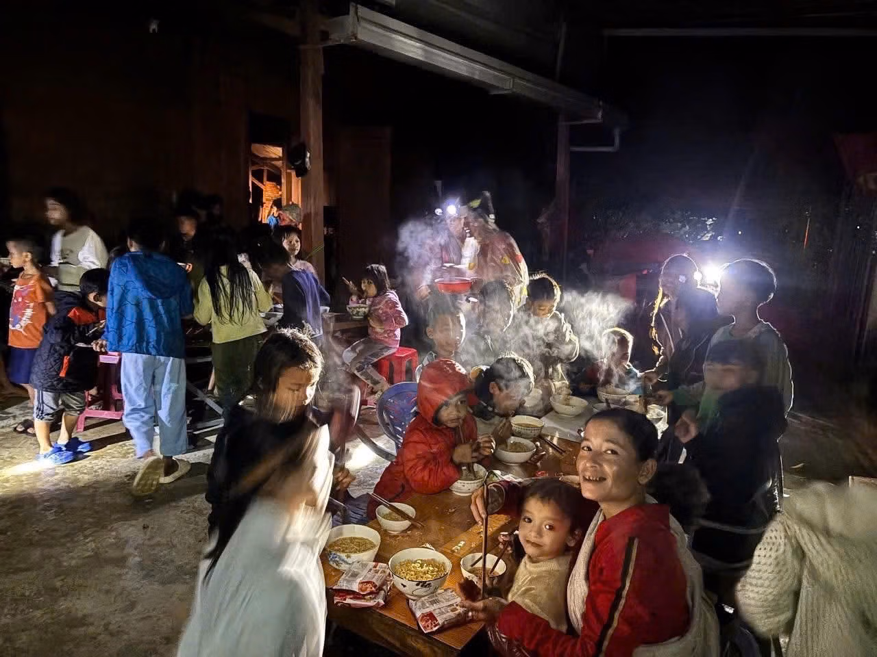 Giữa đêm mưa lũ, cán bộ Công an xã Trà Leng nấu mì tôm tiếp sức người dân tránh trú an toàn