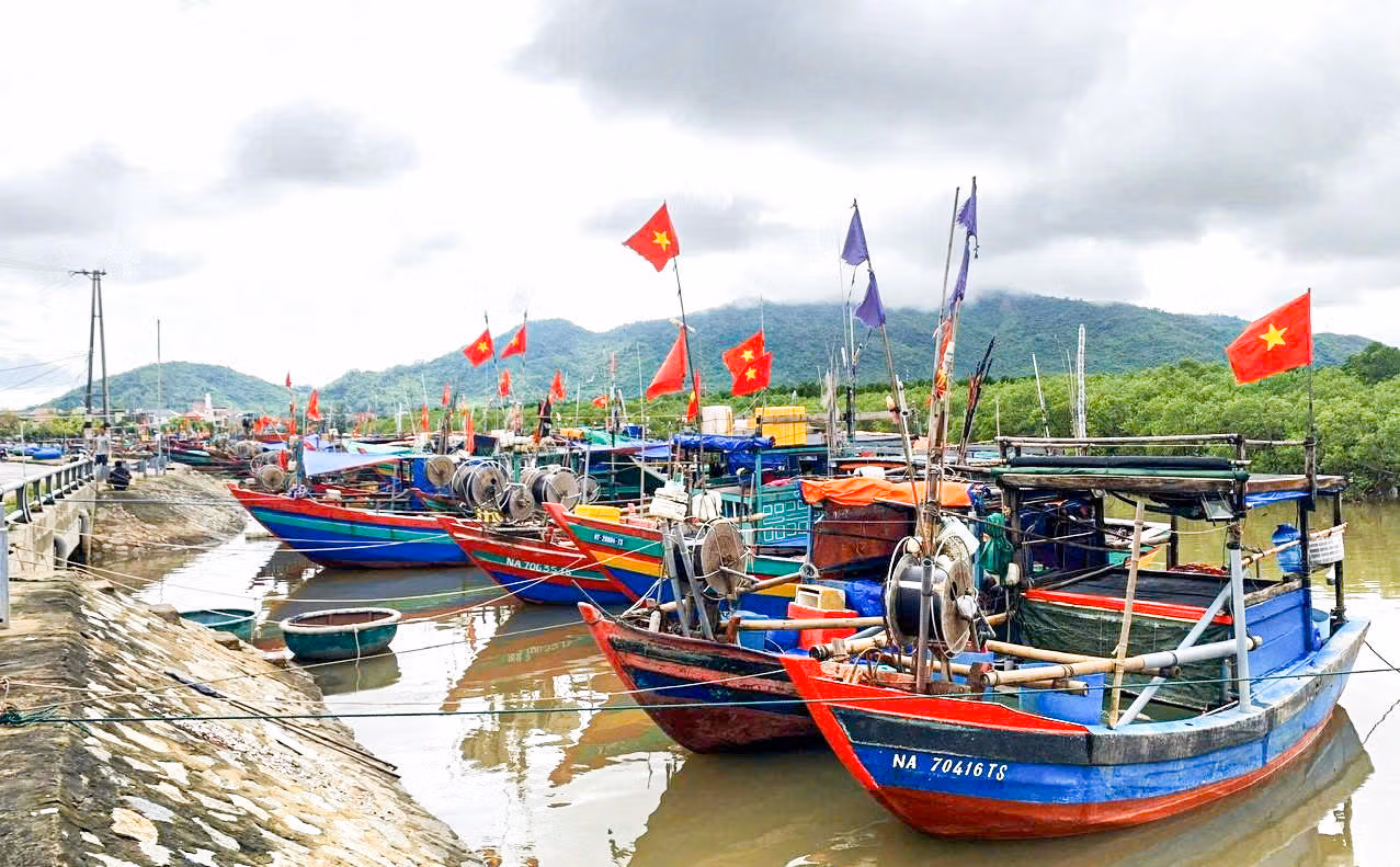 Những ngày này, tại cảng cá Cửa Sót (xã Lộc Hà, tỉnh Hà Tĩnh), không khí lao động trên bến dưới thuyền diễn ra khẩn trương. Tàu cá nối đuôi cập bến, ngư dân tất bật bốc dỡ hải sản, chuẩn bị ngư cụ và nhu yếu phẩm cho chuyến biển mới. Xen giữa nhịp sống lao động ấy là hoạt động tuyên truyền, nhắc nhở ngư dân về ngày hội lớn của đất nước.