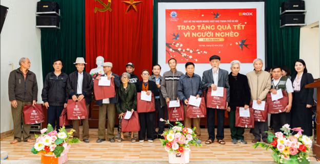 Thông qua Quỹ Vì người nghèo vượt khó thành phố Hà Nội, mỗi năm Tập đoàn ROX đã trao hàng nghìn suất quà Tết tới các hộ gia đình chính sách, hộ cận nghèo và những hoàn cảnh khó khăn trên địa bàn Thủ đô. Dịp Xuân Bính Ngọ 2026, những phần quà Tết tiếp tục được gửi tới bà con nghèo tại các địa bàn của Hà Nội.