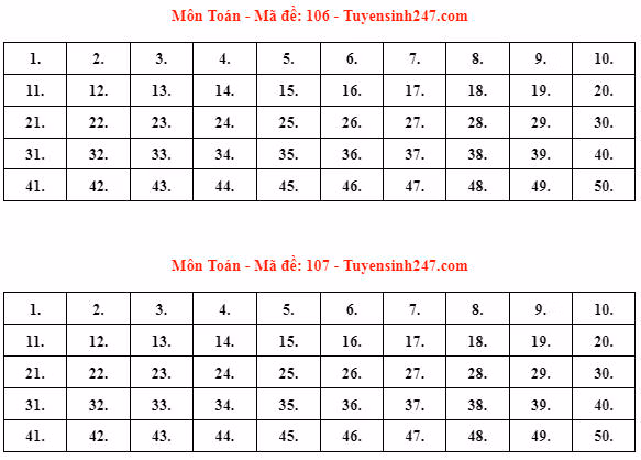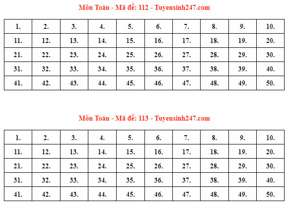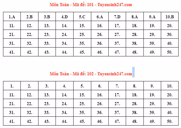 Thí sinh và phụ huynh có thể tham khảo gợi ý đáp án môn Toán dưới đây: