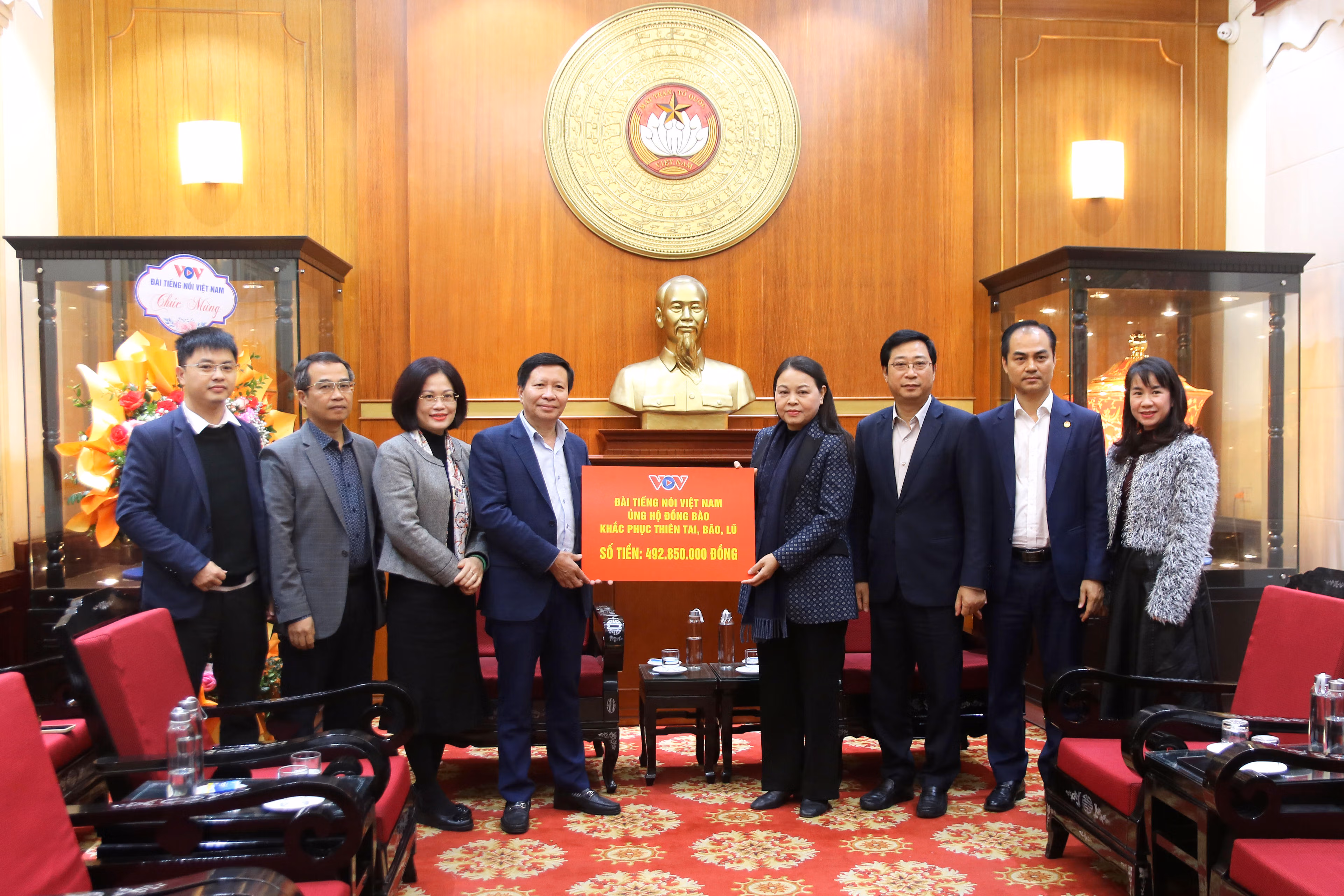 Ngày 19/11, bà Nguyễn Thị Thu Hà, Ủy viên Trung ương Đảng, Phó Chủ tịch - Tổng Thư ký UBTƯ MTTQ Việt Nam đã tiếp nhận ủng hộ đồng bào khắc phục thiệt hại do thiên tai, bão lũ từ Đài Tiếng nói Việt Nam (VOV) số tiền 492,85 triệu đồng.