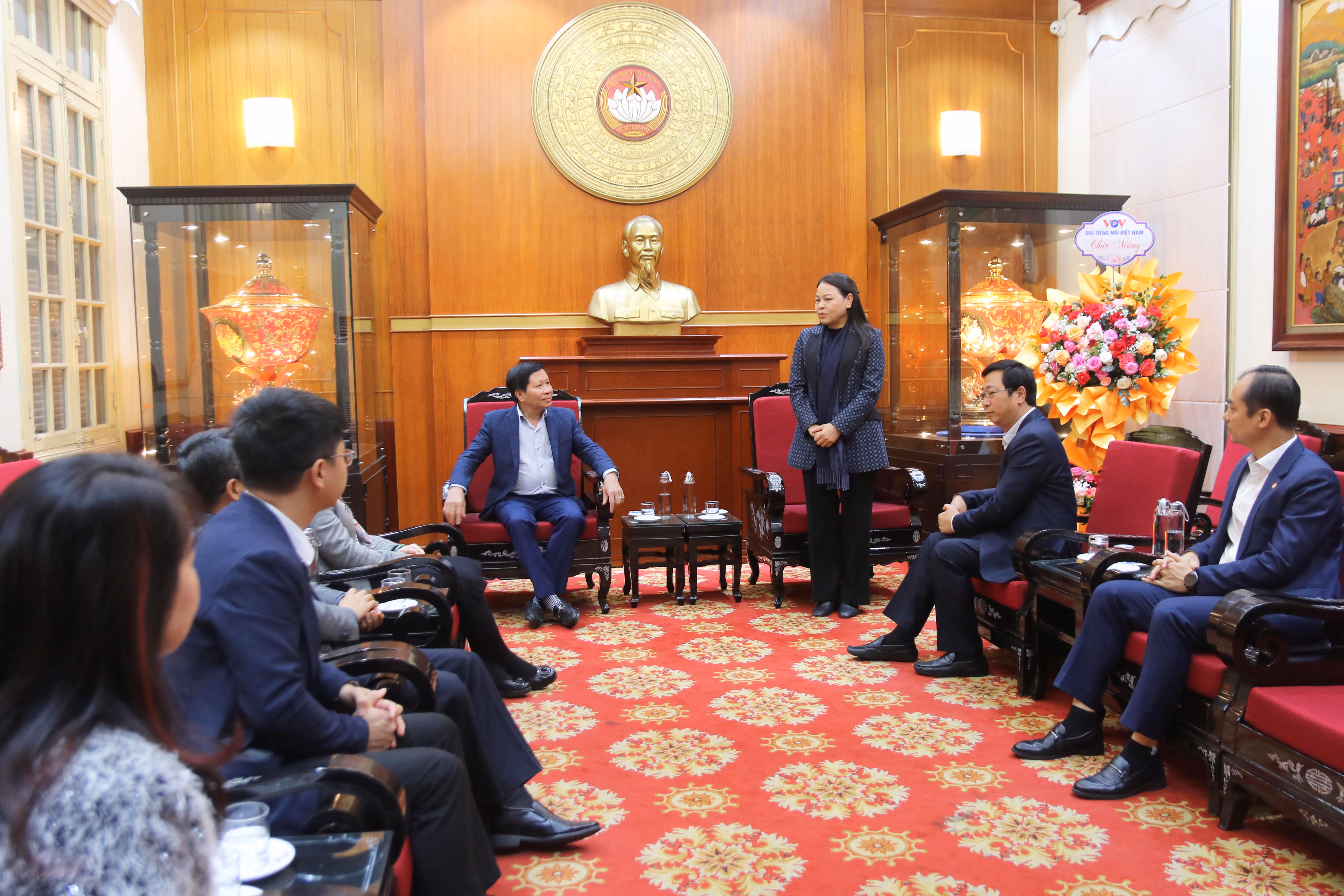 Nhân dịp này, Phó Chủ tịch - Tổng Thư ký Nguyễn Thị Thu Hà gửi lời cảm ơn tới lãnh đạo, cán bộ, phóng viên, biên tập viên, người lao động của VOV đã quan tâm, phối hợp với UBTƯ MTTQ Việt Nam trong thực hiện công tác an sinh xã hội, đẩy mạnh tuyên truyền, lan tỏa những giá trị nhân văn trong xã hội, động viên bà con nhân dân vươn lên trong cuộc sống; đồng thời mong muốn hai cơ quan tiếp tục phối hợp hiệu quả hơn trong thời gian tới.