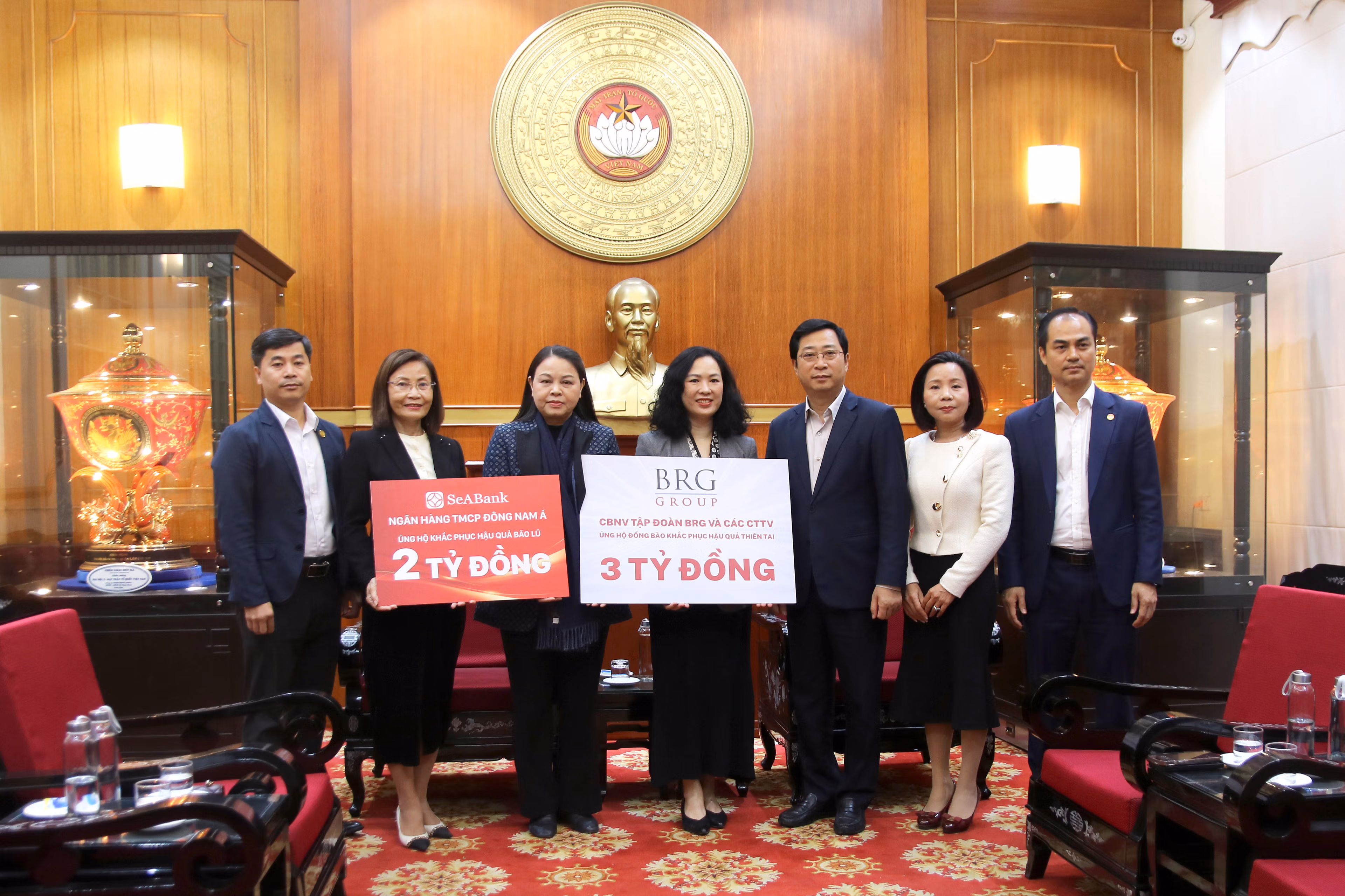 Cùng ngày, Phó Chủ tịch - Tổng Thư ký Nguyễn Thị Thu Hà đã tiếp nhận ủng hộ từ BRG Group số tiền 3 tỷ đồng; Ngân hàng TMCP Đông Nam Á - SeABank ủng hộ 2 tỷ đồng.