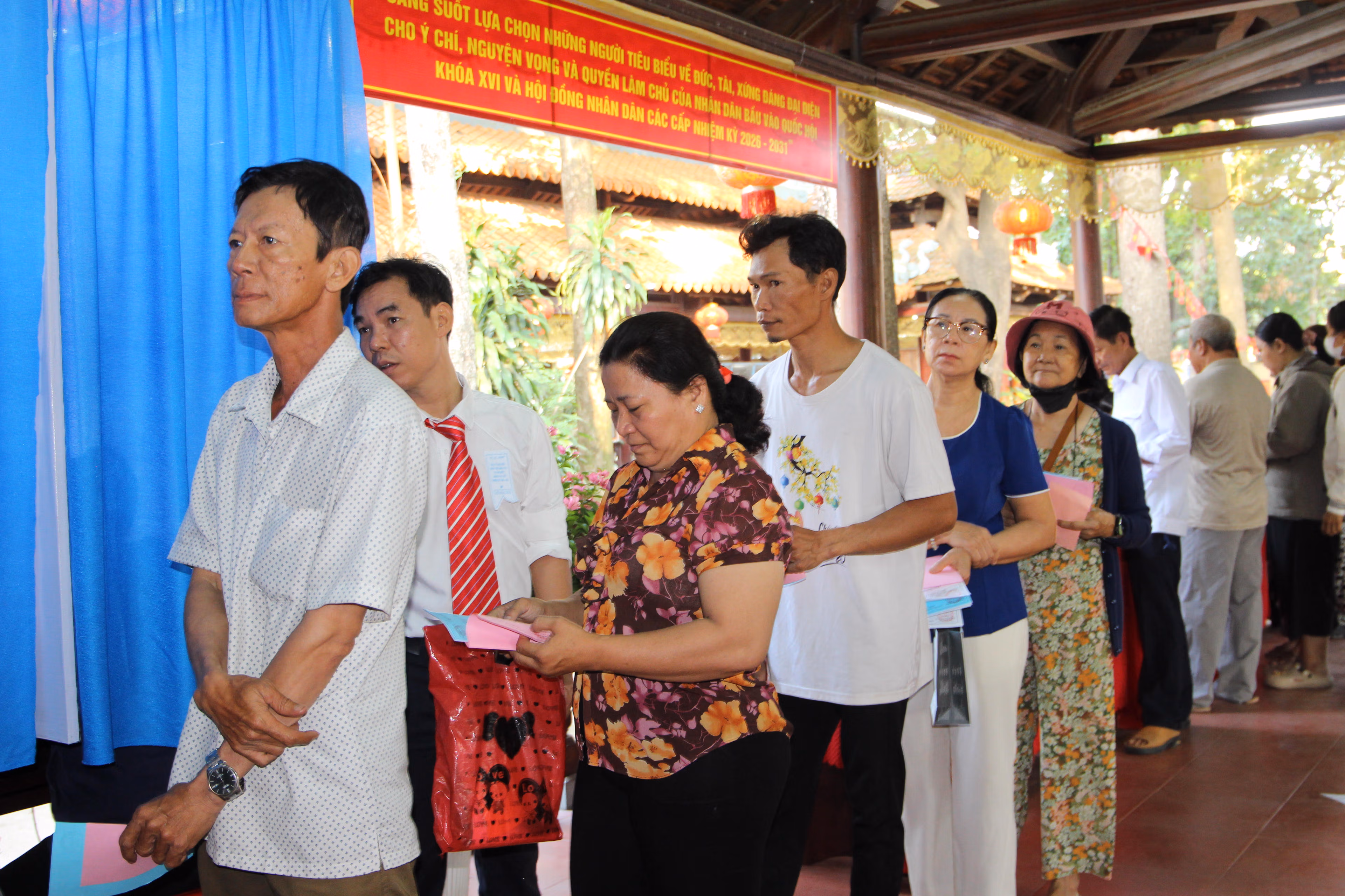 Ông Vũ Trọng Trang – Tổ trưởng Tổ Bầu cử số 1 cho hay, điểm bầu cử này có 1.644 cử tri được phát phiếu bàu. Trong đó có những người lớn tuổi, được con cháu đưa đi, họ mong muốn được tự tay bỏ lá phiếu tín nhiệm của mình. Những người ốm đau, khuyết tất, không thể đến điểm bổ phiếu, khu phố sẽ đưa thùng phiếu đến tận nhà để họ thực hiện quyền công dân của mình.