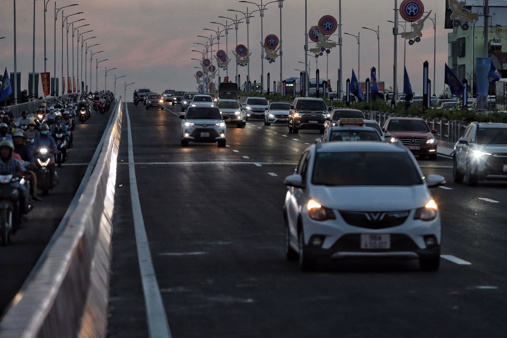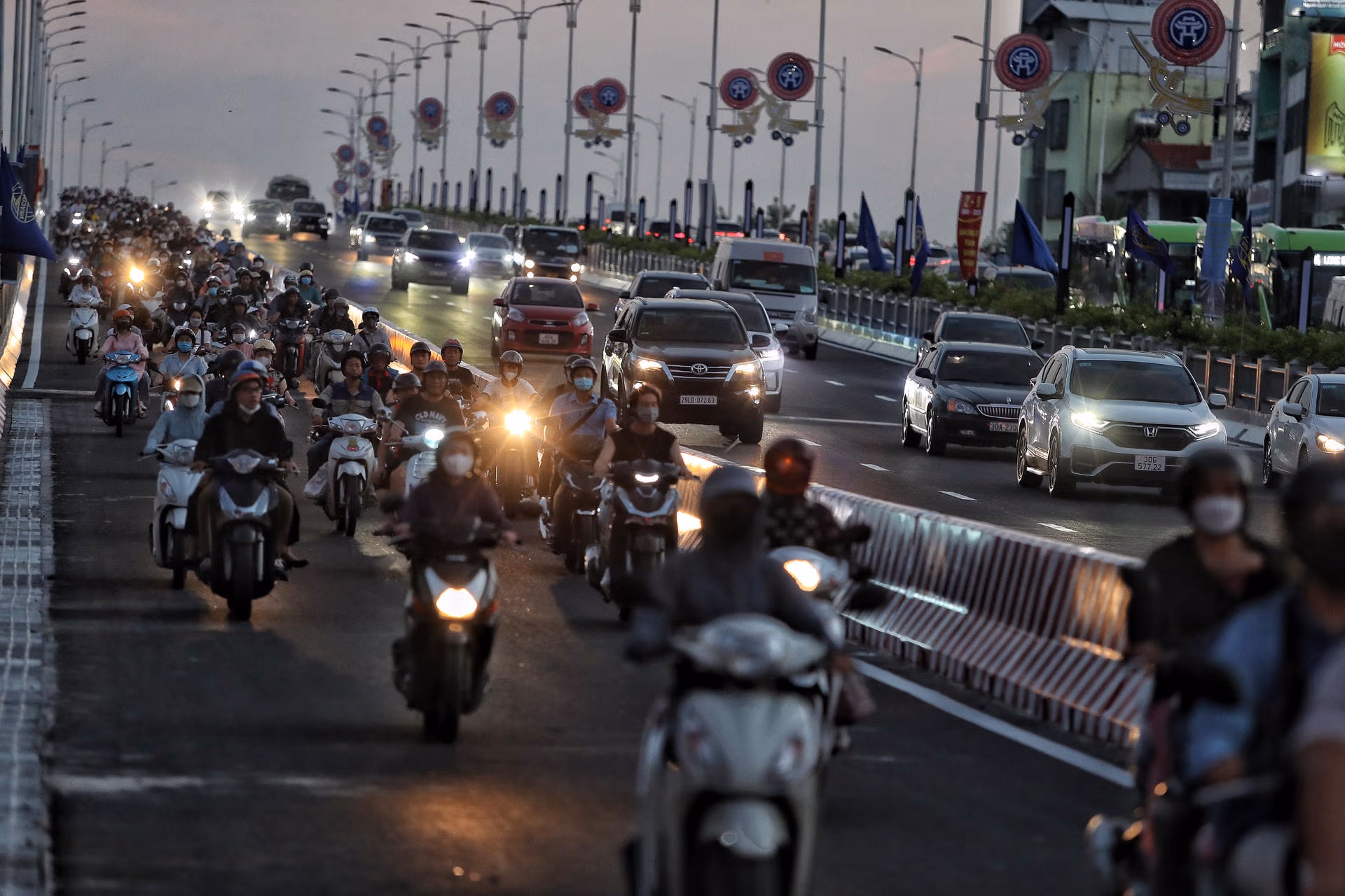 Hà Nội: Cầu Vĩnh Tuy 2 chính thức thông xe, ùn tắc giao thông có giảm? Thứ Tư 30/08/2023 19:52 (GMT+7) Đúng 18h tối ngày 30/8, cầu Vĩnh Tuy giai đoạn 2 đã chính thức cho các phương tiện di chuyển, nhiều người dân tỏ rõ sự phấn khởi. Theo ghi nhận của PV Báo Đại Đoàn Kết Online, đúng 18h ngày 30/8 cầu Vĩnh Tuy 2 đã chính thức cho các phương tiện lưu thông qua cầu. Ngay sau khi thông xe các phương tiện dễ dàng di chuyển không còn phải chen chúc trên cầu Vĩnh Tuy 1.Về tổ chức giao thông trên cầu Vĩnh Tuy giai đoạn 2, người và phương tiện tham gia giao thông đường bộ đi 1 chiều trên mặt cầu Vĩnh Tuy mới theo hướng từ Hai Bà Trưng đi Long Biên.Phân chia làn xe cơ giới với làn xe hỗn hợp bằng dải phân cách cứng và hệ thống biển báo hướng dẫn phân làn xe trên giá long môn.Người và phương tiện tham gia giao thông đường bộ đi 1 chiều trên cầu Vĩnh Tuy mới – giai đoạn 2 hướng từ Hai Bà Trưng đi Cầu Vĩnh Tuy mới qua 3 nhánh lên cầu: Đi từ đường đê Nguyễn Khoái theo hướng từ cầu Thanh Trì về cầu Vĩnh Tuy rẽ phải vào nhánh cầu CV1B. Đi theo đường đê Nguyễn Khoái, hướng từ cầu Chương Dương về cầu Thanh Trì muốn đi Long Biên rẽ phải theo nhánh CV1A lên cầu Vĩnh Tuy – giai đoạn 2. Đi từ đường Minh Khai và cầu cạn trên cao Vành đai 2 muốn đi Long Biên sẽ đi thẳng lên cầu Vĩnh Tuy – giai đoạn 2.Về tổ chức giao thông tạm trên cầu Vĩnh Tuy cũ, người và phương tiện tham gia giao thông đường bộ đi 1 chiều trên cầu Vĩnh Tuy cũ – giai đoạn 1 theo hướng từ Long Biên đi Hai Bà Trưng và được phân làn phương tiện theo hướng: Bốn làn xe cơ giới làn cạnh dải phân cách giữa, tốc độ tối đa 40 km/h; 1 làn xe hỗn hợp (xe máy và xe thô sơ), là làn cạnh lan can phải cầu, tốc độ tối đa 30 km/h.Phân chia làn xe cơ giới với làn xe hỗn hợp bằng vạch sơn chia làn và hệ thống biển báo hướng dẫn phân làn xe, biển cảnh báo “tuyến đường đang hoàn thiện hệ thống hạ tầng đảm bảo giao thông” trên giá long môn.Với hệ thống đường gom 2 bên cầu Vĩnh Tuy – đường Đàm Quang Trung (quận Long Biên), Sở GTVT tổ chức giao thông cho người và phương tiện tham gia giao thông đường bộ đi 1 chiều, cùng chiều với phương tiện lưu thông qua cầu Vĩnh Tuy trên đường Đàm Quang Trung - đoạn từ Cổ Linh đến Bát Khối và ngược lại.Sau khi thông xe, nhiều người dân tỏ ra phấn khởi khi không còn chịu cảnh ùn tắc.Chị Thu trú tại Long Biên, Hà Nội cho hay, mọi hôm chị thường phải rất chật vật để di chuyển trên cầu Vĩnh Tuy cũ. Để di chuyển từ Minh Khai sang nút giao Cô Linh thông thường chị phải mất từ 20-25 phút."Hôm nay di chuyển trên cây cầu mới tôi rất phấn khởi, đường khá thông thoáng rút ngắn thời gian về nhà của tôi", chị Thu chia sẻ.Hình ảnh các phương tiện lưu thông trên cầu Vĩnh Tuy giai đoạn 2 thông thoáng.Các phương tiện di chuyển thuận lợi. Lê Khánh
