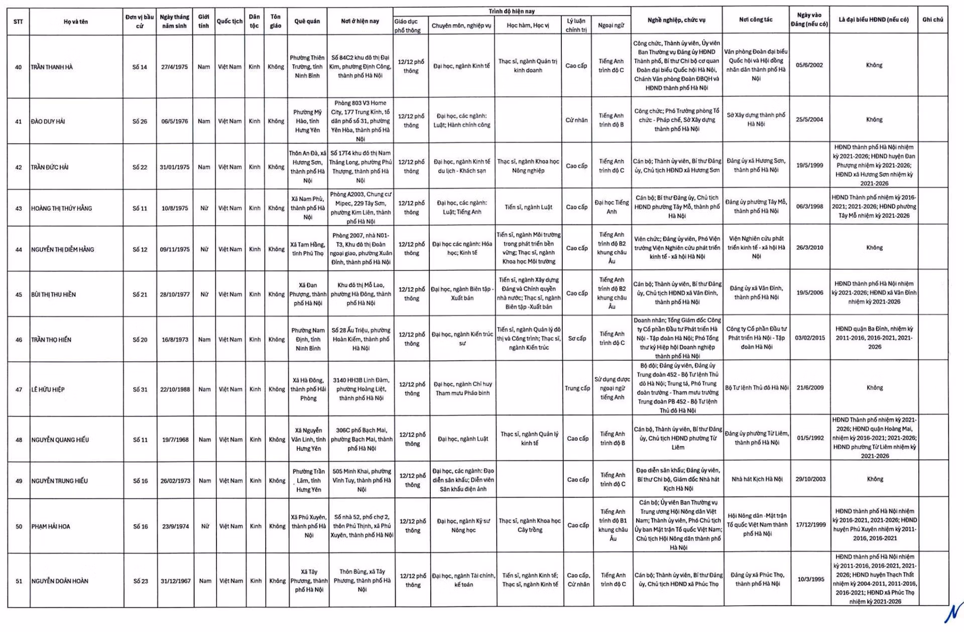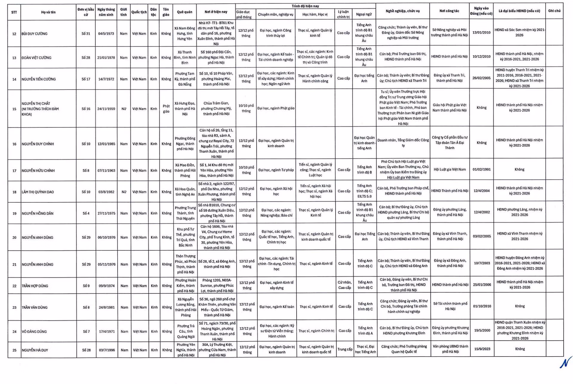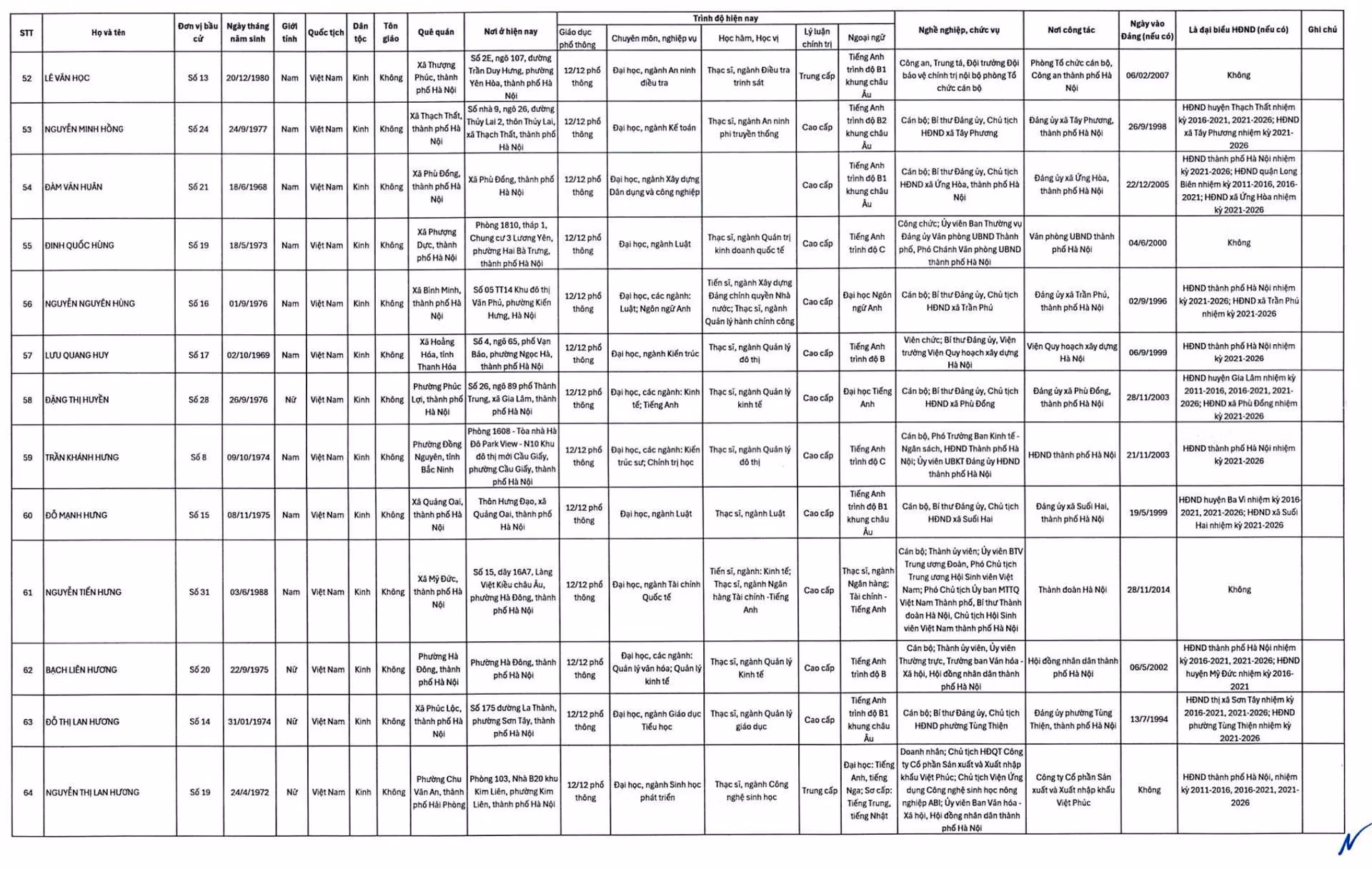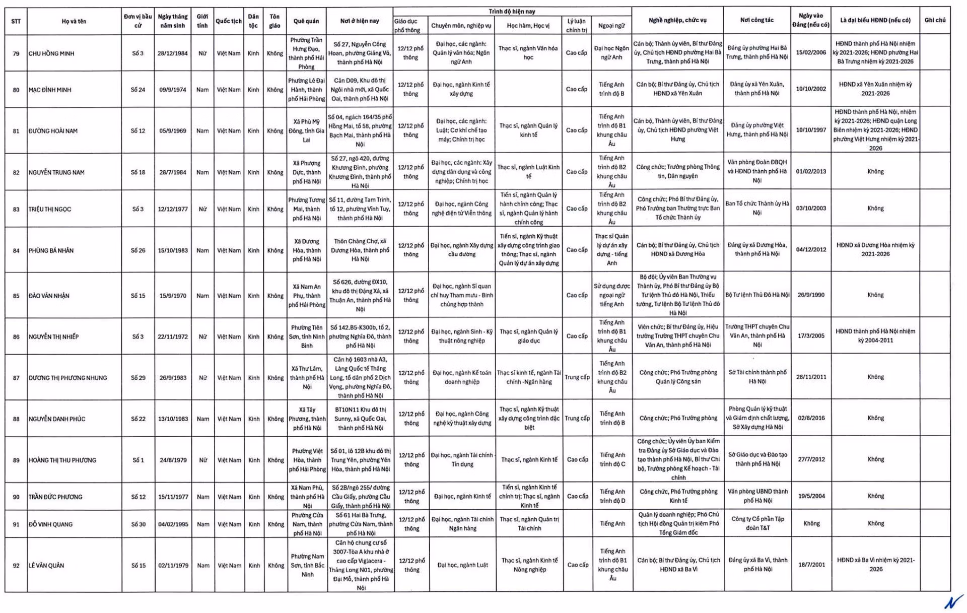 Danh sách những người trúng cử đại biểu HĐND thành phố Hà Nội khoá XVII, nhiệm kỳ 2026-2031gồm: