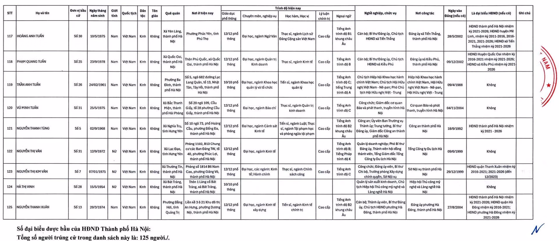 Hà Nội công bố danh sách 125 người trúng cử HĐND nhiệm kỳ 2026-2031