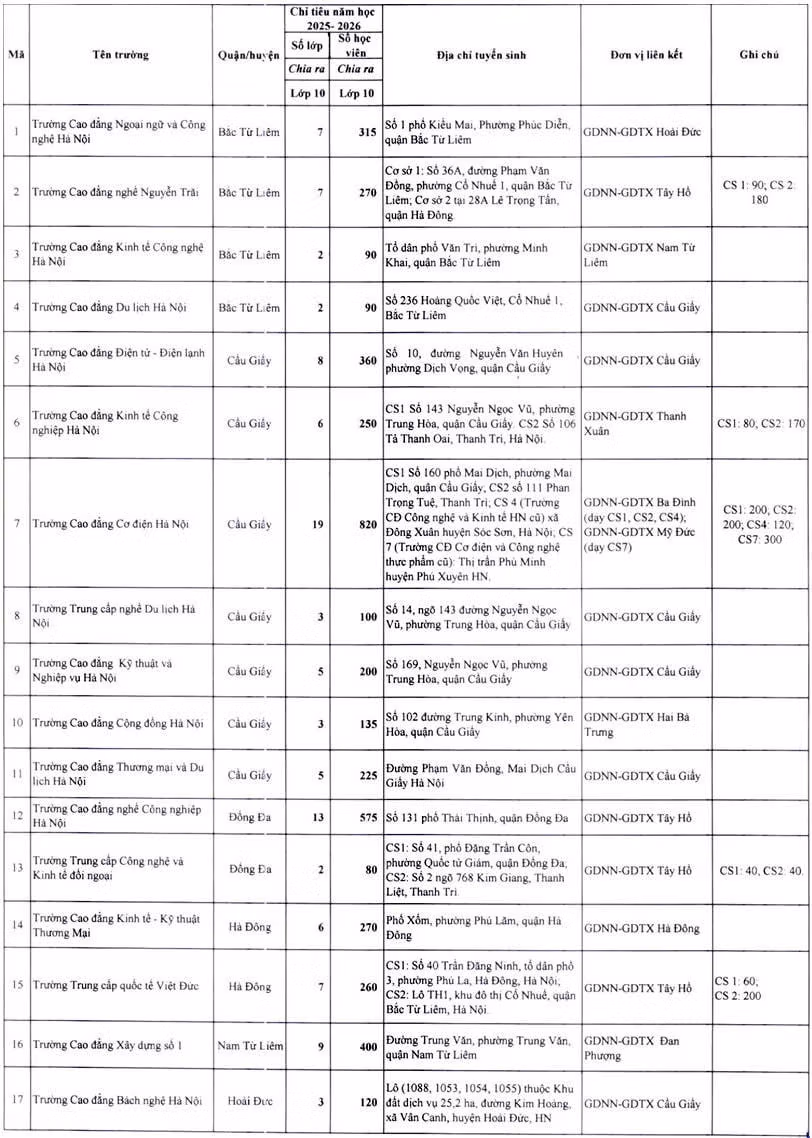 Theo thông báo của Sở Giáo dục và Đào tạo Hà Nội, năm học 2025 - 2026, 46 cơ sở giáo dục nghề nghiệp trên địa bàn thành phố sẽ tuyển gần 13.500 chỉ tiêu học văn hóa chương trình giáo dục thường xuyên cấp THPT.