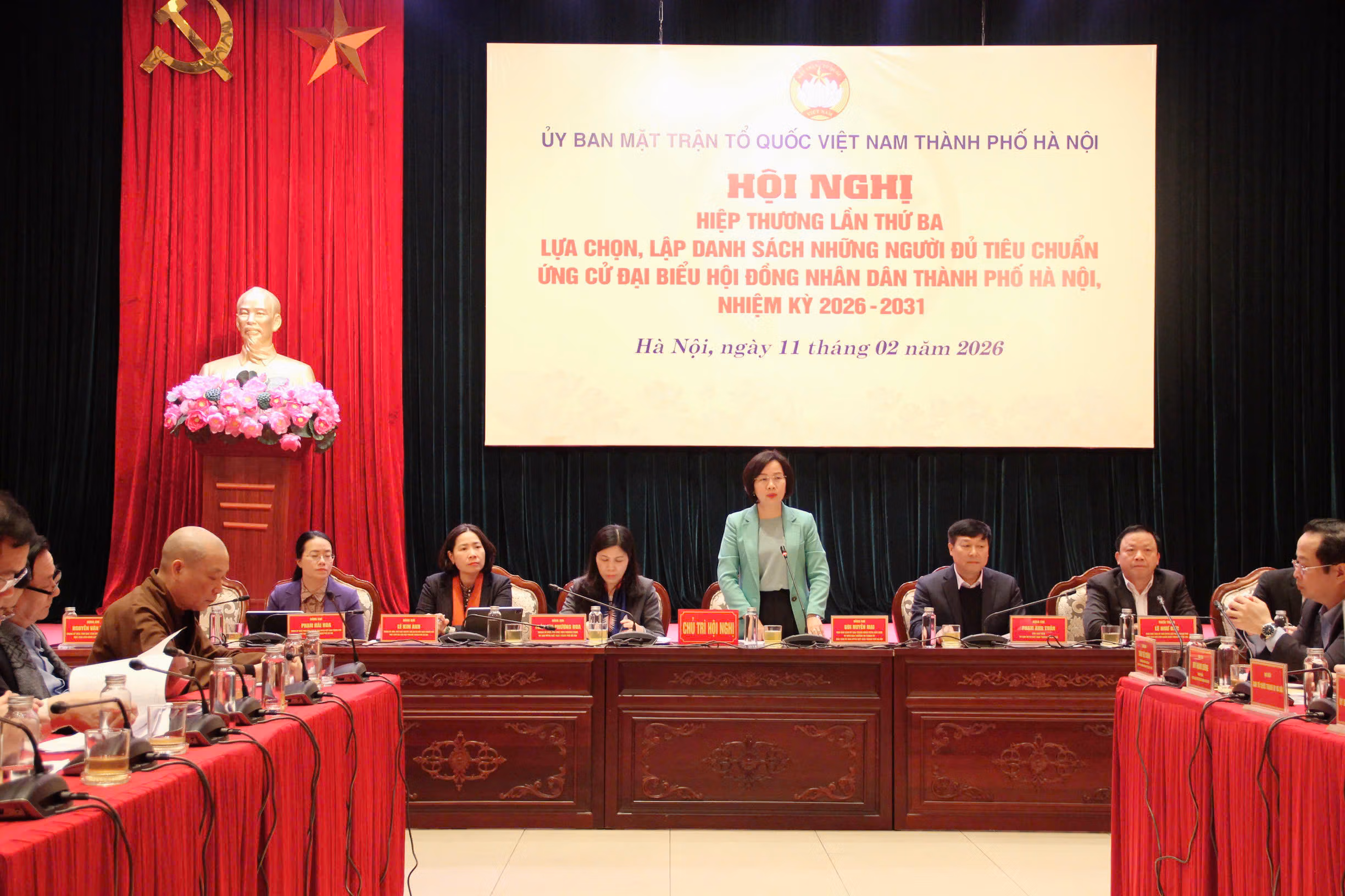 Phát huy dân chủ, trí tuệ, trách nhiệm, hội nghị hiệp thương lần thứ ba Ủy ban MTTQ Việt Nam thành phố Hà Nội đã lựa chọn, lập danh sách 39 người đủ tiêu chuẩn ứng cử đại biểu Quốc hội khóa XVI và danh sách 205 người đủ tiêu chuẩn ứng cử đại biểu HĐND thành phố, nhiệm kỳ 2026 - 2031; không có người tự ứng cử.