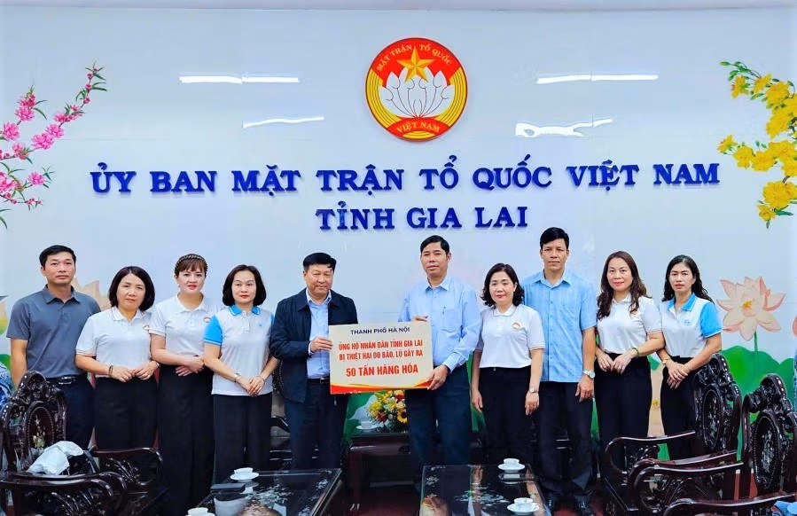 Ông Phạm Anh Tuấn, Phó Chủ tịch Thường trực Ủy ban MTTQ Việt Nam TP Hà Nội cho biết, thực hiện sự phân công của Bộ Chính trị, Ủy ban MTTQ Việt Nam TP Hà Nội đã vận động nhân dân Thủ đô hướng về đồng bào miền Trung bị thiệt hại do bão lũ. Đến nay, Hà Nội đã quyên góp được 50 tấn hàng hóa, gồm 30 tấn gạo cùng quần áo, thuốc chữa bệnh để hỗ trợ người dân vùng lũ Gia Lai.