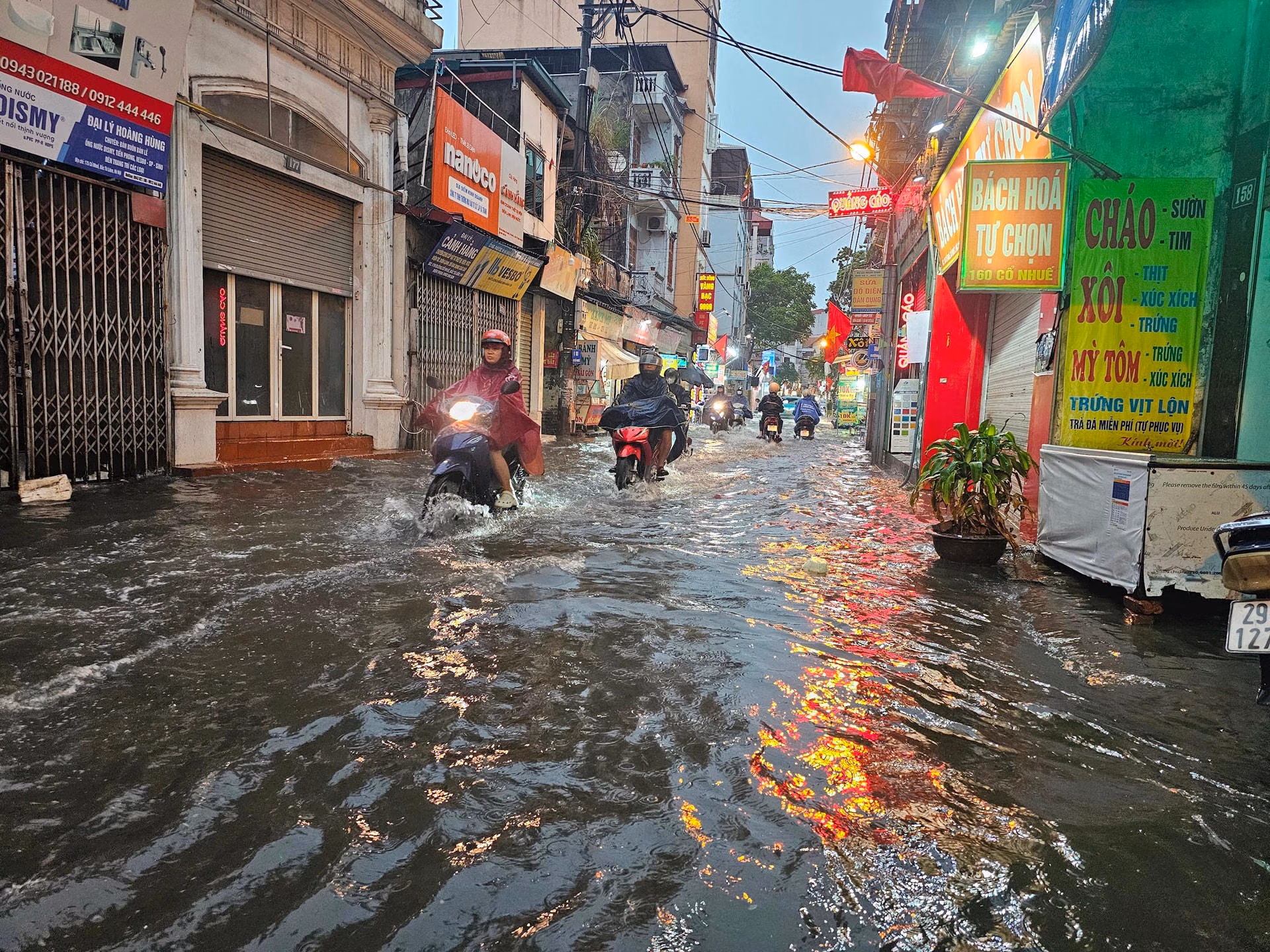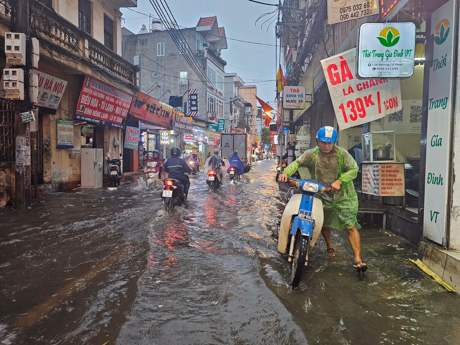 Hà Nội: Mưa lớn chiều tối nay, nhiều tuyến phố ngập và ùn tắc Thứ Hai 30/06/2025 20:13 (GMT+7) Trận mưa lớn vào chiều nay (30/6) vào giờ tan tầm khiến nhiều tuyến phố tại Thủ đô Hà Nội bị ngập, phương tiện di chuyển khó khăn. Nhiều tuyến phố ở Hà Nội ngập và tắc sau cơn mưa lớn chiều 30/6.Theo Trung tâm Dự báo khí tượng thủy văn quốc gia chiều tối 30/6, khu vực nội thành Hà Nội và các vùng lân cận tiếp tục có mưa to với lượng mưa phổ biến trong khoảng 20-50mm, có nơi trên 70mm. Theo đó, đợt mưa này có khả năng sẽ gây ngập úng cho nhiều tuyến phố với độ sâu phổ biến 15-20cm; một số tuyến phố có khả năng ngập sâu hơn với độ sâu 20-40cm. Ảnh: Quốc Thanh.Chiều nay (30/6), ghi nhận của phóng viên, sau cơn mưa lớn, nhiều tuyến phố tại Hà Nội bị ngập, gây khó khăn cho phương tiện tham gia giao thông. Ảnh: Quốc Thanh.Đường Cổ Nhuế đoạn từ số nhà 151 đến 209 thường xuyên xảy ra ngập khi mưa lớn. Một số phương tiện bị ảnh hưởng, chết máy đột ngột khi di chuyển qua đây vào chiều nay. Ảnh: Quốc Thanh.Mưa lớn, phương tiện di chuyển khó khăn khiến nhiều tuyến phố trở nên ùn tắc. Ảnh: Quốc Thanh.Tại đường Hoàng Quốc Việt xuất hiện tình trạng ùn tắc kéo dài. Ảnh: Quốc Thanh.Giao thông hỗn loạn tại nút giao Phạm Văn Đồng - Hoàng Quốc Việt, từ lòng đường lên vỉa hè ken đặc phương tiện. Ảnh: Quốc Thanh.Lòng đường ùn tắc, nhiều phương tiện di chuyển trên vỉa hè. Ảnh: Quốc Thanh.Anh Xuân Mạnh (39 tuổi, ở Cổ Nhuế, thành phố Hà Nội) ngán ngẩm khi đi đoạn đường khoảng 1km nhưng di chuyển hơn 1 tiếng đồng hồ vẫn chưa đến nơi do ùn tắc. "Sắp đến giờ học thêm của cháu rồi mà đường không nhúc nhích nổi, như này bị muộn giờ chắc rồi", anh Mạnh bày tỏ. Ảnh: Quốc Thanh.Các chiến sỹ CSGT vất vả điều tiết giao thông sau cơn mưa lớn chiều 30/6. Ảnh: Quốc Thanh.Khu vực nút giao đường Phạm Hùng - Xuân Thủy - Phạm Văn Đồng - Hồ Tùng Mậu mật độ giao thông đông, trên cầu vượt nối đường Phạm Hùng và đường Phạm Văn Đồng phương tiện di chuyển khó khăn, nhúc nhích từng chút một. Ảnh: Quốc Thanh. Quốc Thanh
