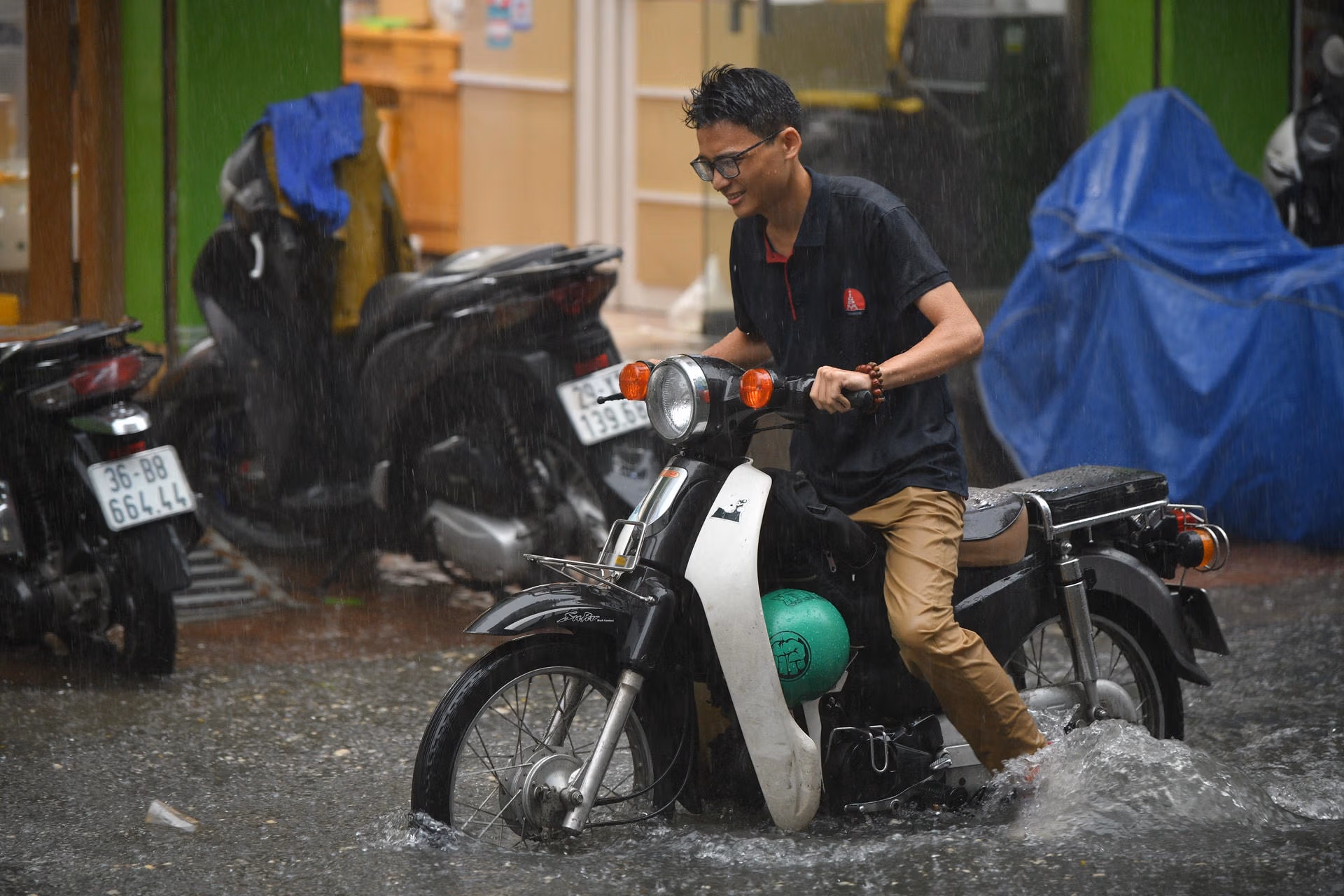 Hà Nội mưa 'trắng trời' gây ngập úng cục bộ Thứ Sáu 11/08/2023 16:09 (GMT+7) Trưa 11/8, Hà Nội xảy ra một cơn mưa rào khiến nhiều tuyến phố nhanh chóng bị ngập nước, giao thông trở nên hỗn loạn. Theo ghi nhận của PV Báo Đại Đoàn Kết Online, cơn mưa lớn kéo dài gần 3 tiếng đồng hồ vào trưa nay (11/8) khiến một số đường phố ở Hà Nội ngập nặng. Nhiều khu vực thoát nước chậm khiến người dân đi lại hết sức khó khăn.Chỉ trong 1 giờ đồng hồ đầu tiên, lượng mưa đo được tại Yên Sở (Hoàng Mai) đã lên đến trên 186 mm, tại Tây Mỗ (Nam Từ Liêm) 84,5 mm; Thanh Trì 82,4 mm... Cơn mưa trắng trời, như trút nước, diễn ra trên diện rộng đã gây quá tải hệ thống thoát nước của thành phố.Đến khoảng 12h45, trên địa bàn nội đô đã xuất hiện nhiều điểm úng ngập cục bộ, như: Phố Nguyễn Chính, Hoàng Mai; Thụy Khuê (đoạn dốc La Pho), Đội Cấn, Bùi Xương Trạch, Vương Thừa Vũ, Lê Trọng Tấn, Phạm Ngọc Thạch, Phan Bội Châu - Lý Thường Kiệt...Công ty TNHH MTV Thoát nước Hà Nội cho biết, trước dự báo về khả năng xảy ra mưa, công ty đã chủ động hạ mực nước trên hệ thống. Tại thời điểm xảy ra mưa, công ty đã cho mở cửa phai của các hồ điều hòa và vận hành hợp lý các trạm bơm đầu mối: Đồng Bông, Yên Sở, Cổ Nhuế...Các đơn vị thoát nước đã ứng trực, giải quyết thoát nước ngoài hiện trường, tua vớt rác tại các miệng thu trên toàn địa bàn quản lý, nhằm dẫn nước nhanh nhất về nguồn tiêu, giảm thời gian và mức độ úng ngập...Theo thông báo, khu vực nội thành Hà Nội và các vùng lân cận vẫn tiếp tục có mưa vừa đến mưa to, lượng mưa phổ biến trong khoảng từ 20-40 mm, có nơi trên 60 mm.Đợt mưa này có khả năng sẽ gây ngập úng cho nhiều tuyến phố nội thành với độ sâu phổ biến từ 15-30cm. Đáng chú ý một số tuyến phố có khả năng ngập sâu hơn với độ sâu từ 30-40cm.Nước ngập ngang bánh xe máy khiến người dân đi lại khó khăn...nhiều người phải dắt bộ vì xe chết máy.Các xe máy di chuyển khó khăn. Lê Khánh
