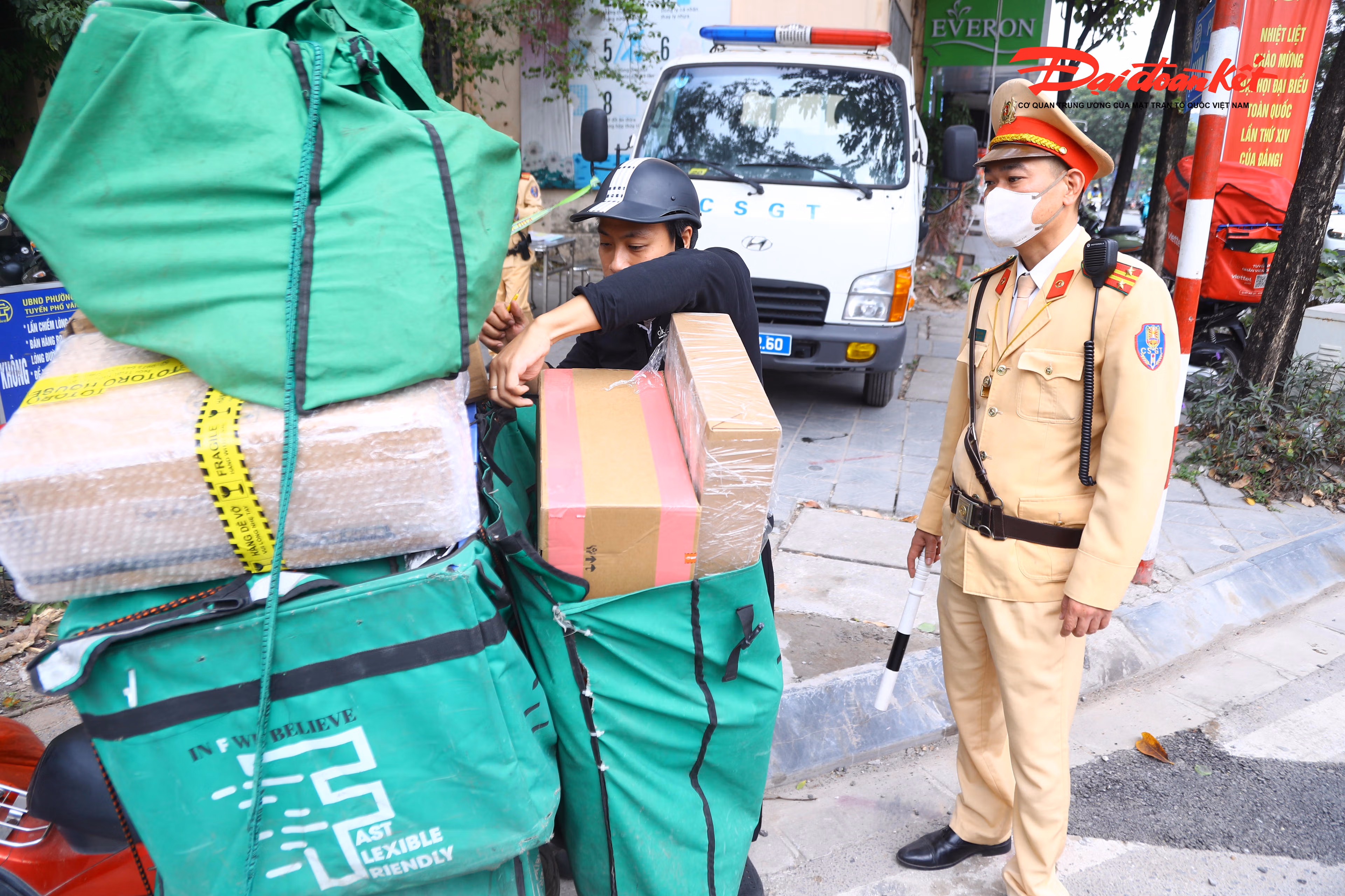 Sáng 23/12, Tổ công tác thuộc Đội CSGT đường bộ số 4 (Phòng CSGT Công an Hà Nội), phối hợp với Trung tâm điều khiển giao thông Hà Nội sử dụng hệ thống camera AI, phát hiện, xử lý các trường hợp shipper chở hàng làm che khuất biển kiểm soát "né" camera AI phạt nguội.
