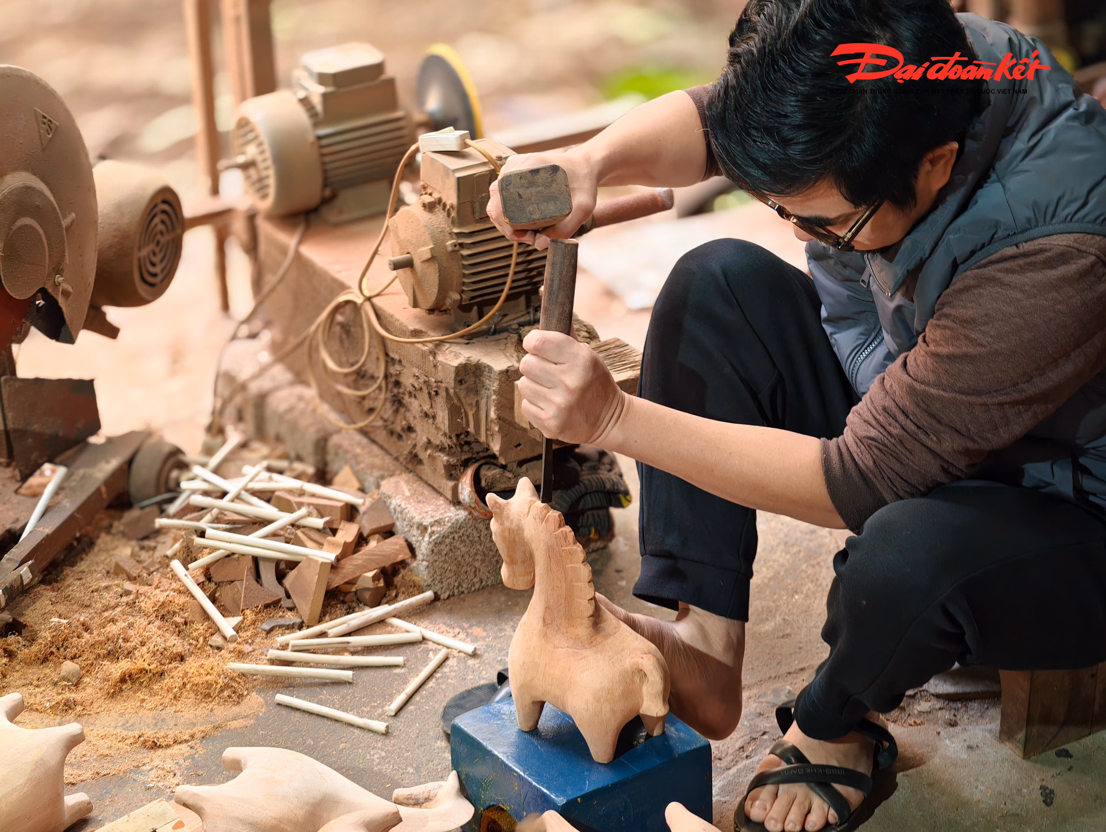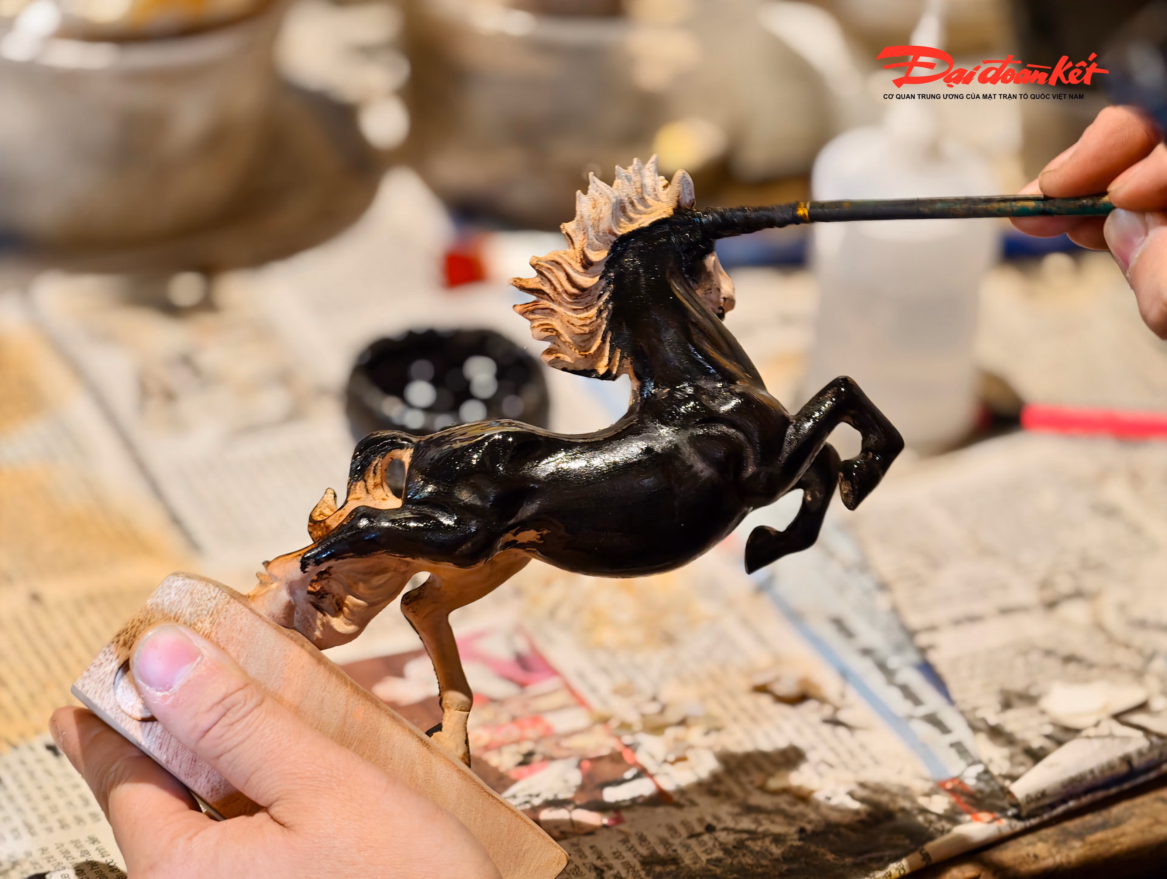 Mỗi mảng hình ngựa đều được tạo dáng hoàn toàn thủ công, trải qua nhiều lần chỉnh sửa, trau chuốt kỹ lưỡng trước khi bước vào công đoạn phủ sơn.