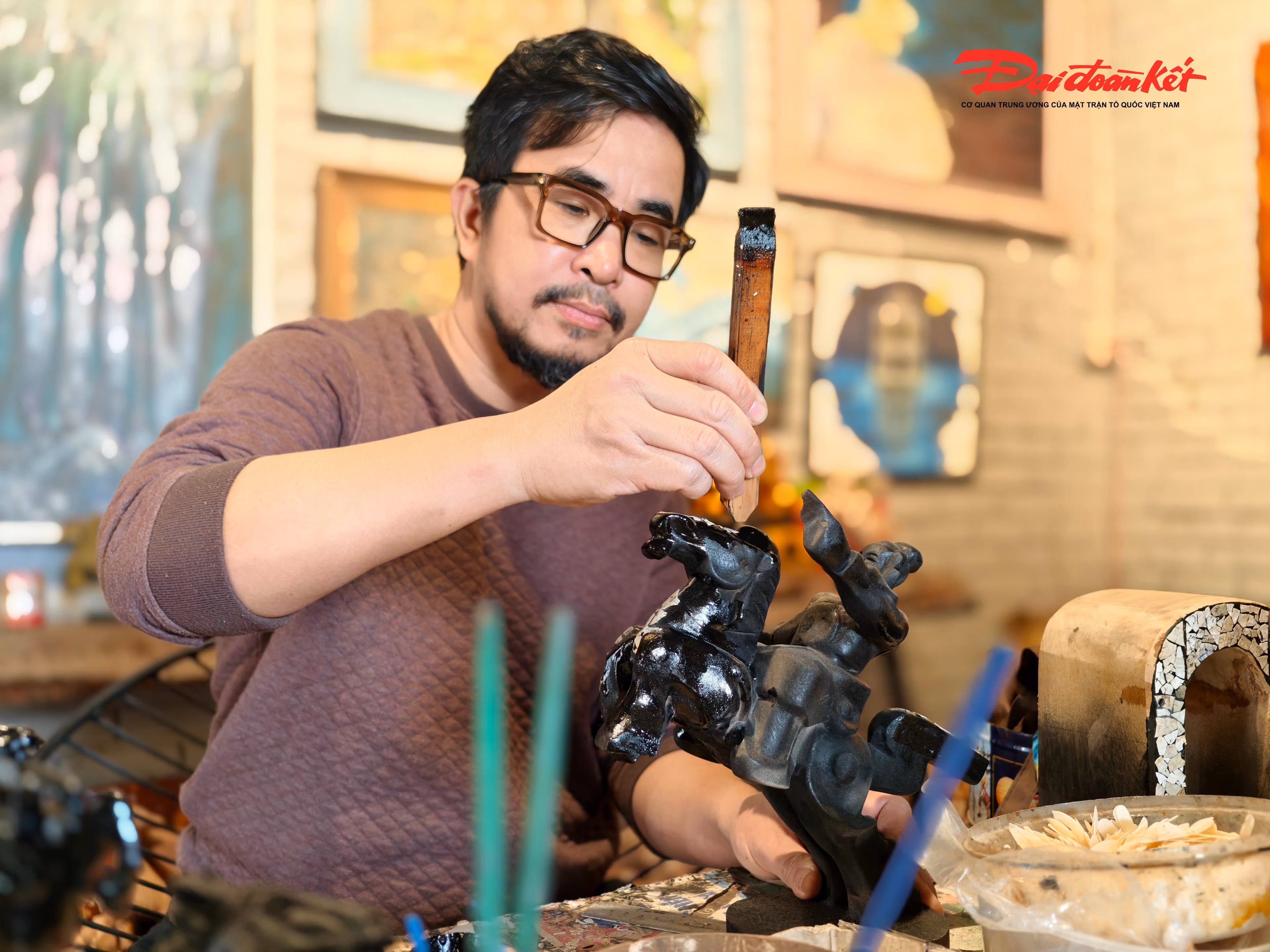 Từng công đoạn để tạo nên tác phẩm ngựa sơn mài đều được nghệ nhân Nguyễn Tấn Phát chăm chút tỉ mỉ, cẩn trọng đến từng chi tiết nhỏ.