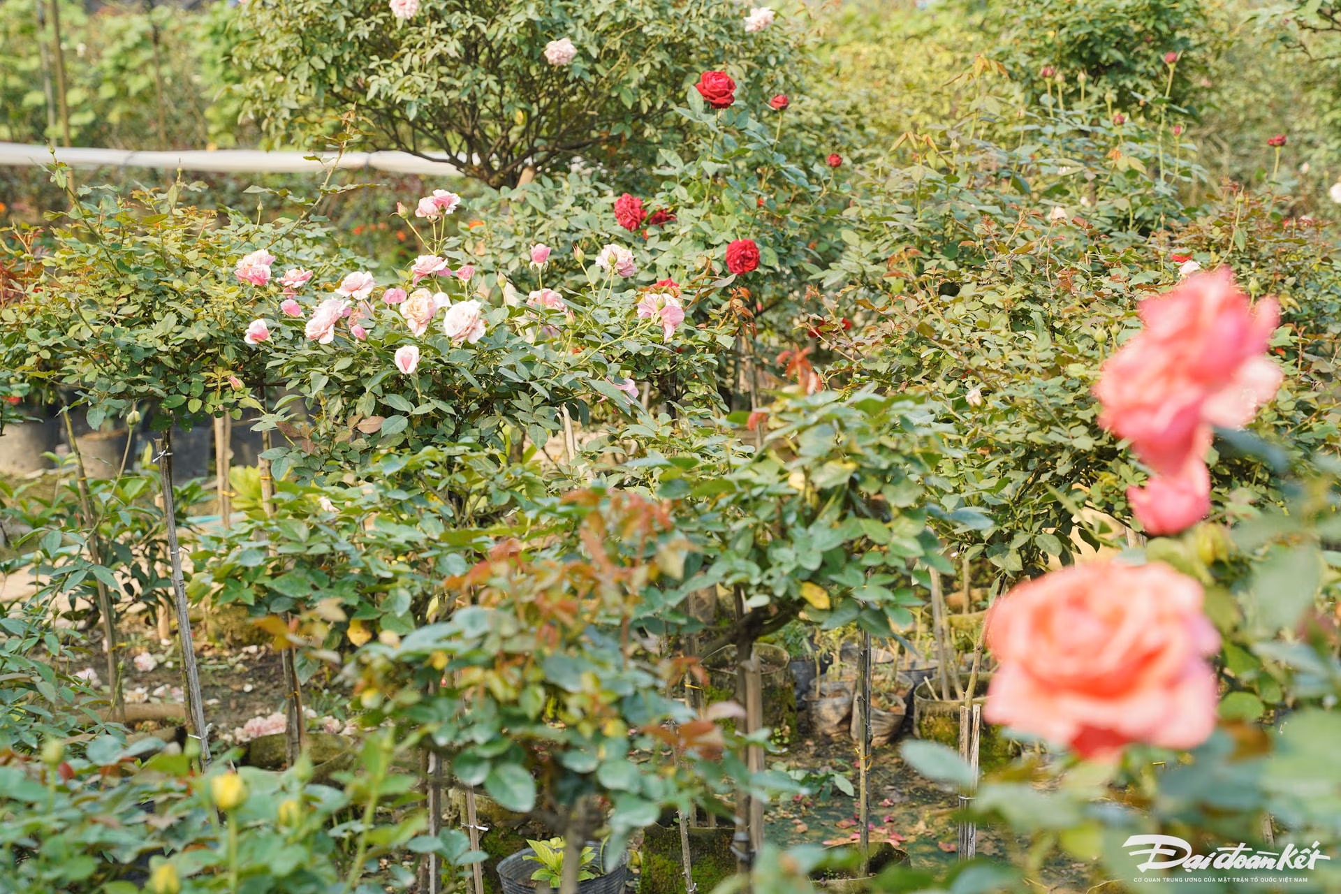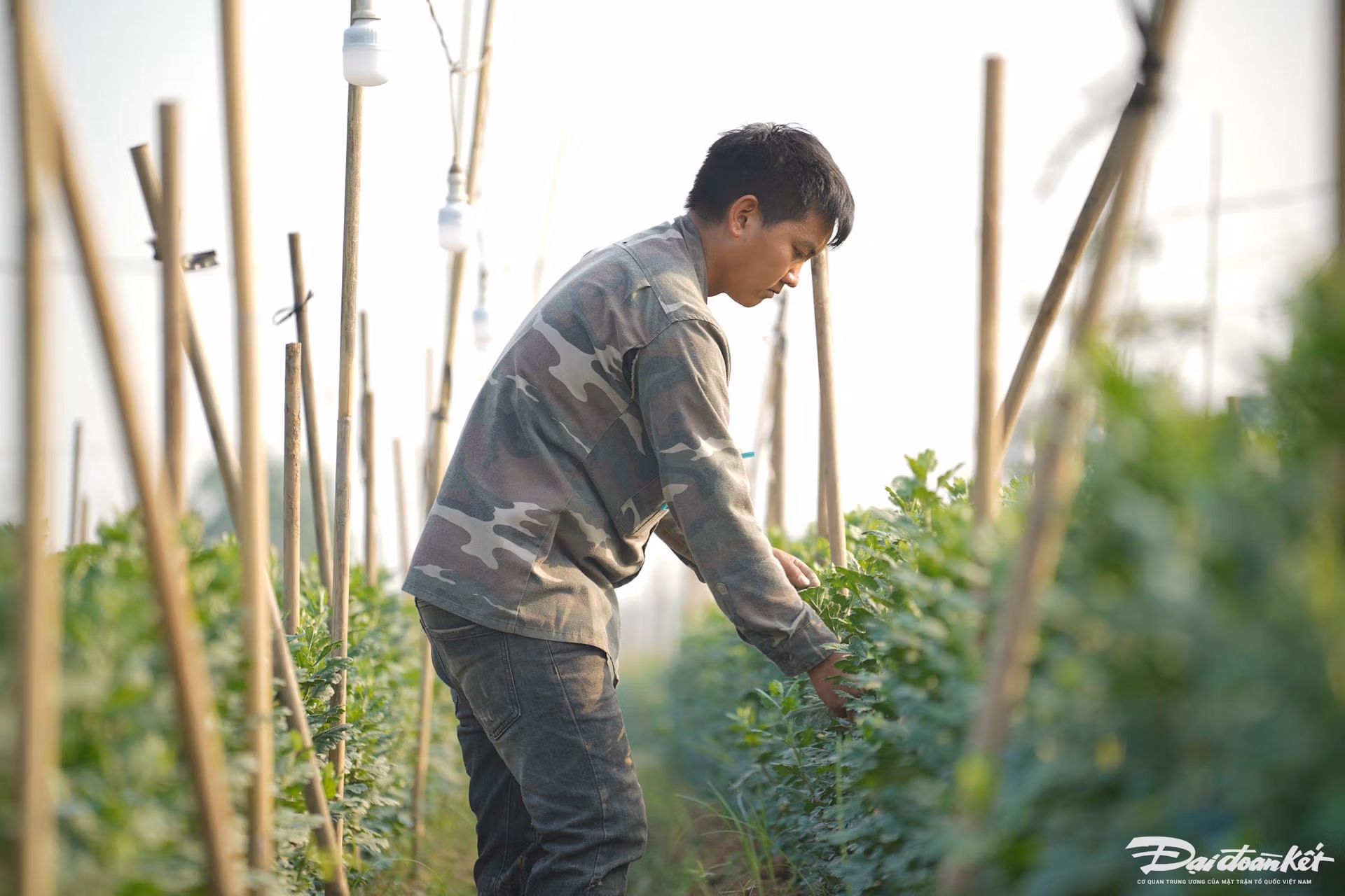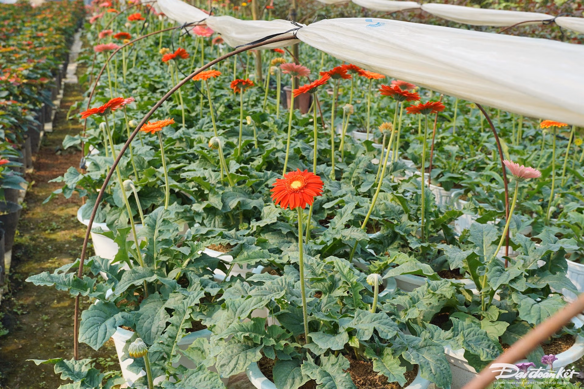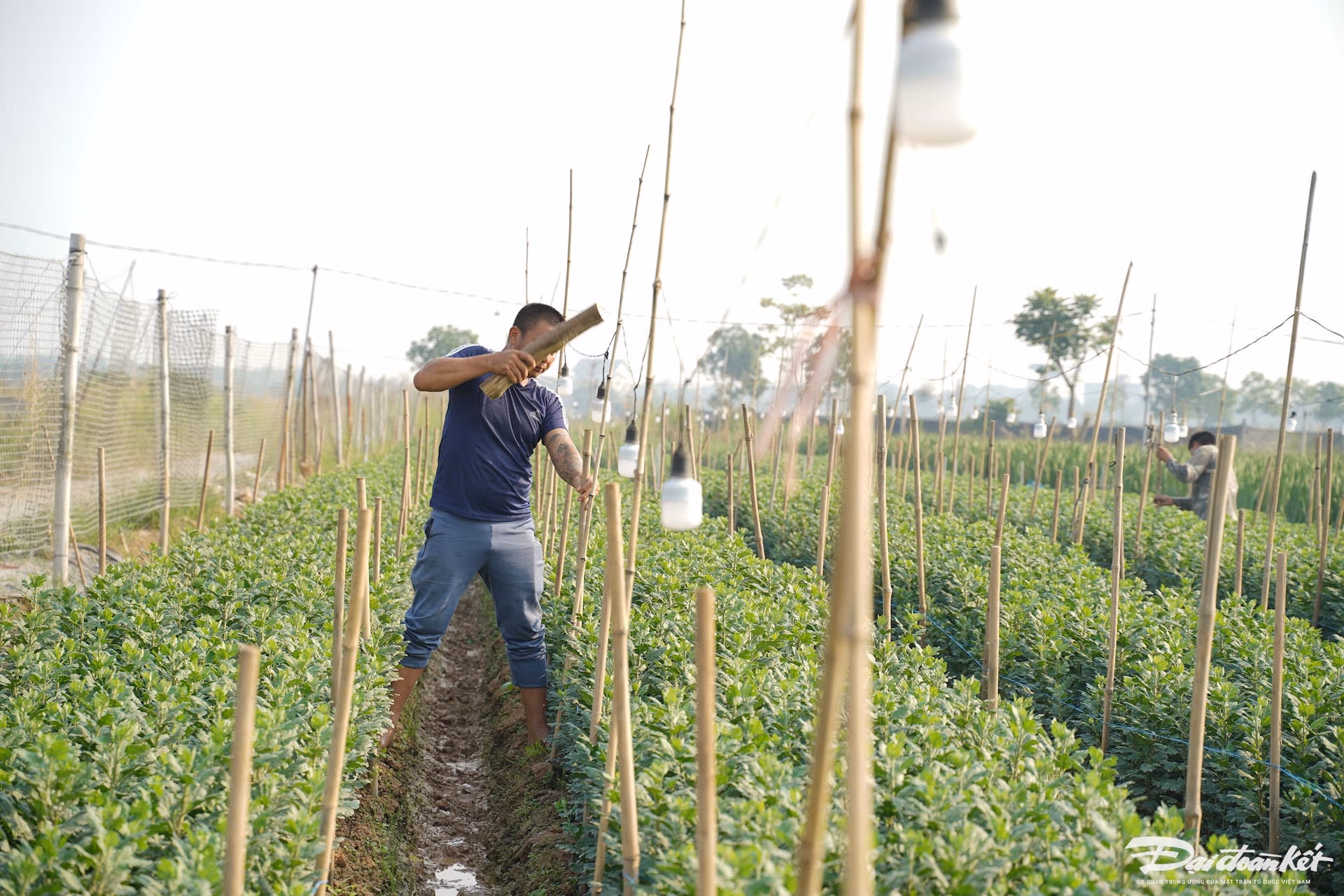Hà Nội: Người dân 'thủ phủ' hoa Mê Linh tất bật vào vụ Tết Thứ Hai 09/12/2024 14:21 (GMT+7) Nhằm đảm bảo phục vụ hoa cho người dân chơi Tết Nguyên đán Ất Tỵ 2025, những ngày này, nông dân làng hoa Mê Linh (huyện Mê Linh, Hà Nội) tất bật từ sáng sớm đến khuya để chăm sóc. Video người dân Mê Linh chăm sóc hoa, cây cảnh.Nhiều năm qua, huyện Mê Linh đã phát triển mạnh việc trồng và kinh doanh các loại hoa. Là huyện cửa ngõ phía Bắc Thủ đô, hoa được xuất đi khắp nơi và đây cũng là đầu mối du nhập nhiều loại hoa, giống hoa quý, chất lượng. Sẵn sàng đón Tết Ất Tỵ, nông dân tại huyện Mê Linh đang tất bật chăm sóc hoa với hy vọng một vụ hoa được mùa, được giá.Hoa hồng được người dân nơi đây trồng quanh năm để phục vụ các dịp lễ lớn.Không chỉ nổi tiếng với hoa hồng, huyện Mê Linh (Hà Nội) hiện nay còn phát triển các sản phẩm hoa ly, hoa cúc, hoa lan... để phục vụ cho Tết Nguyên đán.Những thửa ruộng trồng hoa cúc trên cánh đồng huyện Mê Linh.Theo người dân trồng hoa Mê Linh, sau bão số 3 (Yagi), hoa cúc được người dân nơi đây trồng nhiều vì đây là giống ngắn ngày và ra hoa đúng hạn.Anh Lê Văn Hiếu, người dân trồng hoa tại Mê Linh cho hay: "Hoa cúc nhà tôi đã trồng được hơn 30 ngày và hiện đã đến lúc chong đèn để hoa nở đúng dịp Tết. Hoa cúc thường mất khoảng 3 tháng để có thể thu hoạch".Ông Nguyễn Thế Ngọc (làng hoa Mê Linh) đang đóng cọc căng lưới để bảo vệ vườn hoa."Năm nay tôi chủ yếu trồng hoa cúc để bán Tết, thị trường hiện cũng ổn vì lượng cung cũng không quá nhiều", ông Ngọc cho biết.Người dân thường xuyên tưới nước cho hoa.Các loài hoa như dạ yến thảo, ngọc thảo, lay ơn, đồng tiền, hồng và ly... được trồng sẵn trong chậu và bán quanh năm.Để hoa hồng nở đúng dịp Tết, người dân đang bắt đầu tiến hành cắt tỉa để cây nhanh chóng ra nụ.Từng cây hoa đều được người dân chăm sóc kỹ càng, tỉ mỉ.Ngoài trồng hoa, người dân nơi đây còn trồng nhiều loại cây phục vụ cho Tết như quất, đào và bưởi.Ông Nguyễn Đức An chia sẻ: "Quất cảnh đang ở trong giai đoạn chăm sóc cuối cùng, một số cây đã có quả vàng ươm rất đẹp".Những quả quất đã bắt đầu chuyển màu, căng mọng.Để cây quất đẹp hơn, người dân thường xuyên phải cắt tỉa.Các hộ trồng đào tại Mê Linh cũng đang hối hả tuốt lá, chuẩn bị cho công đoạn nuôi mắt để thúc đẩy đào ra nụ, sẵn sàng cung ứng ra thị trường Tết. Lê Khánh