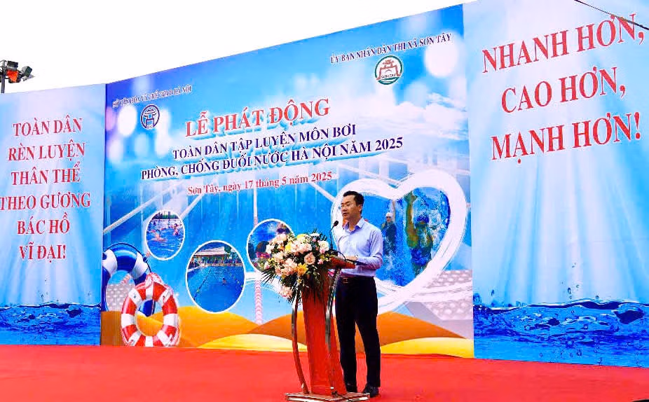Ngày 17/5, tại thị xã Sơn Tây (Hà Nội), Sở Văn hóa và Thể thao Hà Nội phối hợp với UBND thị xã Sơn Tây tổ chức Lễ phát động toàn dân tập luyện môn bơi phòng, chống đuối nước thành phố Hà Nội năm 2025 cho hơn gần 2.000 cán bộ, học sinh, đoàn viên, thanh niên, nhân dân trên địa bàn.