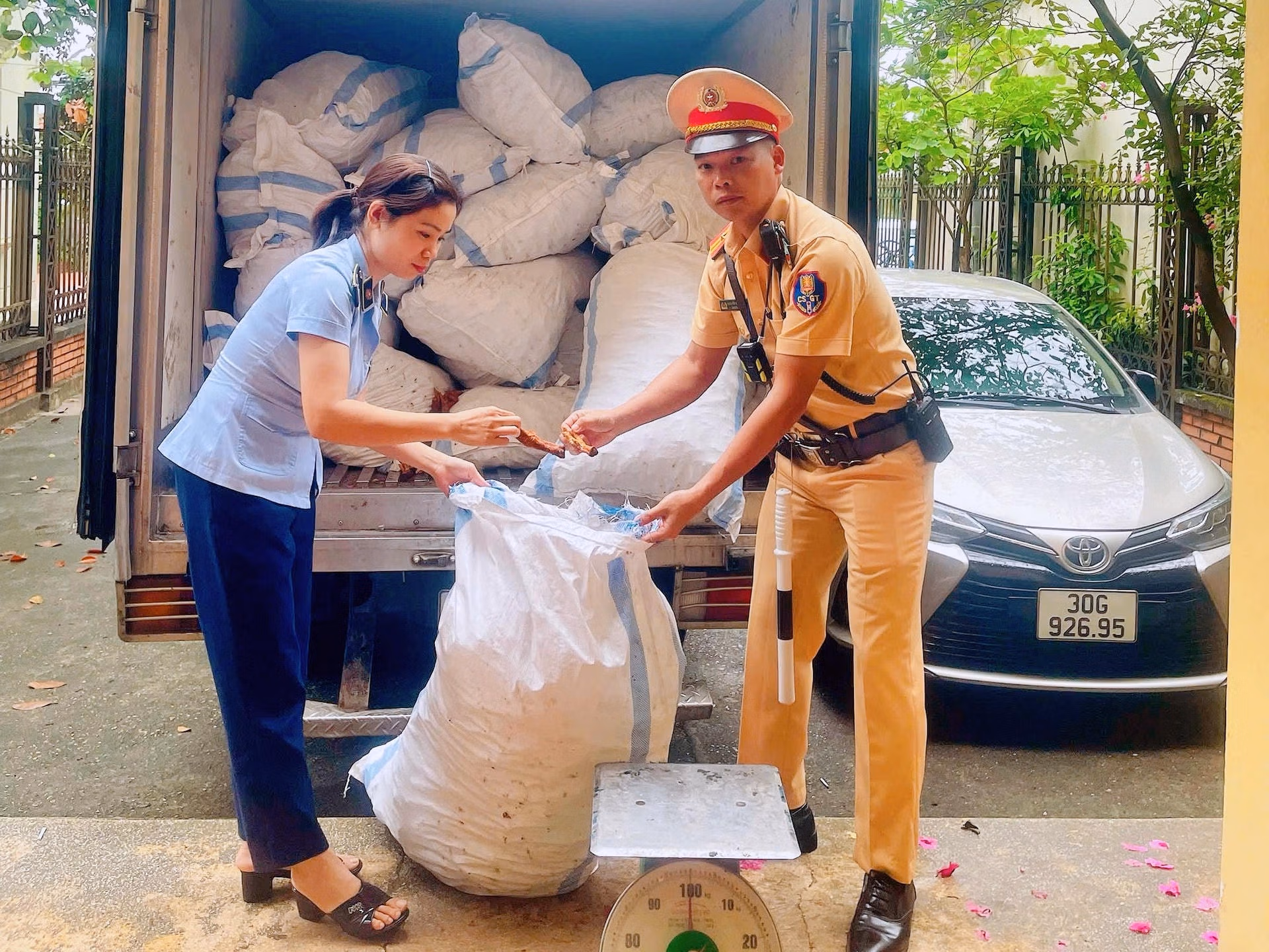 Theo Công an thành phố Hà Nội, khoảng 16h ngày 24/5, Tổ công tác của Đội Cảnh sát giao thông (CSGT) đường bộ số 11, Phòng CSGT và Phòng Cảnh sát kinh tế CATP phối hợp tuần tra, kiểm soát tại khu vực đường Làng Văn Hoá, huyện Thạch Thất thì phát hiện xe ô tô tải biển kiểm soát 29H-363.xx có dấu hiệu nghi vấn.