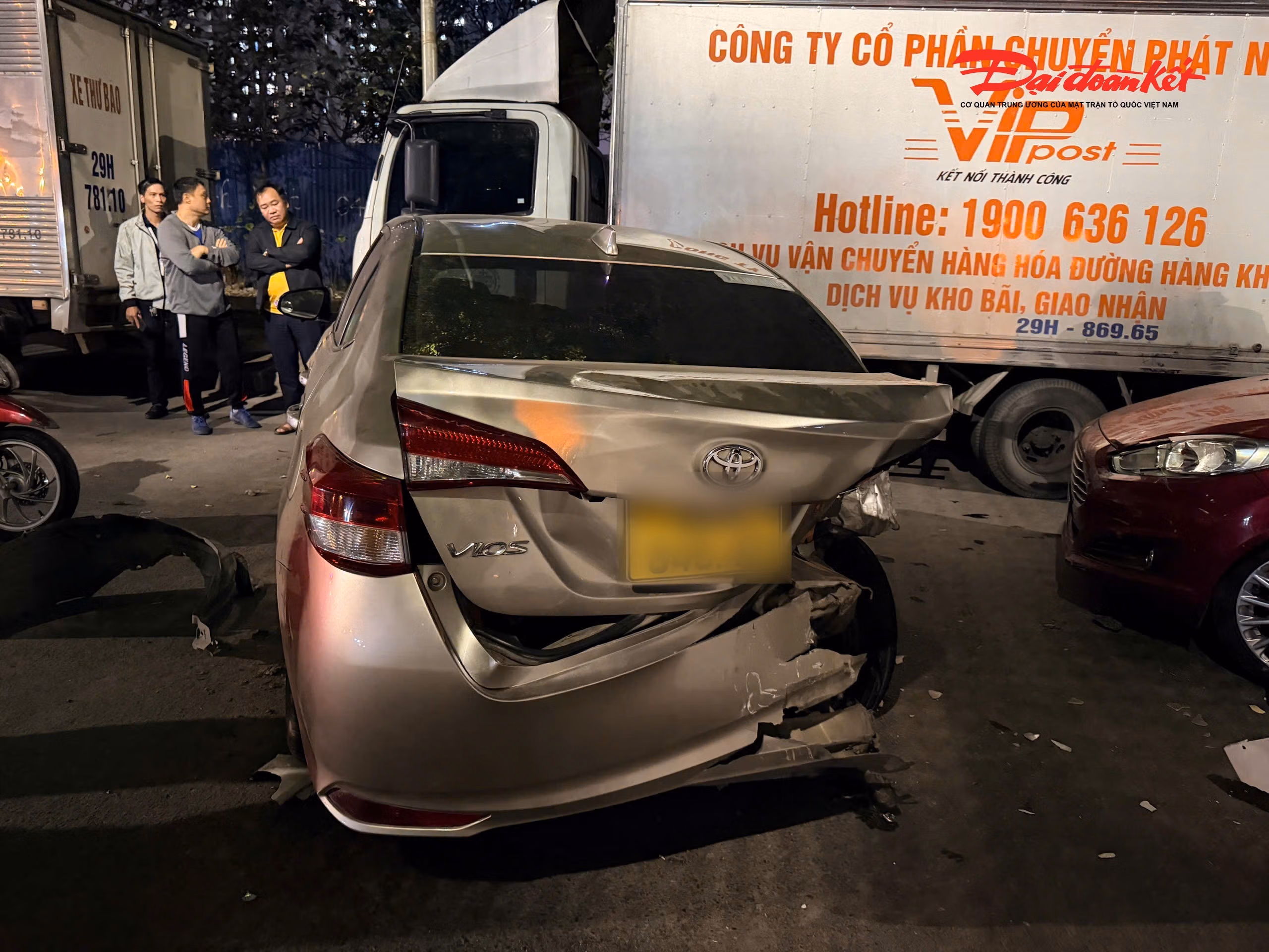 Cú tông mạnh khiến ít nhất 5 ô tô và 2 xe máy bị hư hỏng, một số phương tiện biến dạng phần đầu và thân xe. Nhiều mảnh vỡ văng ra mặt đường, giao thông khu vực bị ảnh hưởng trong thời gian ngắn.