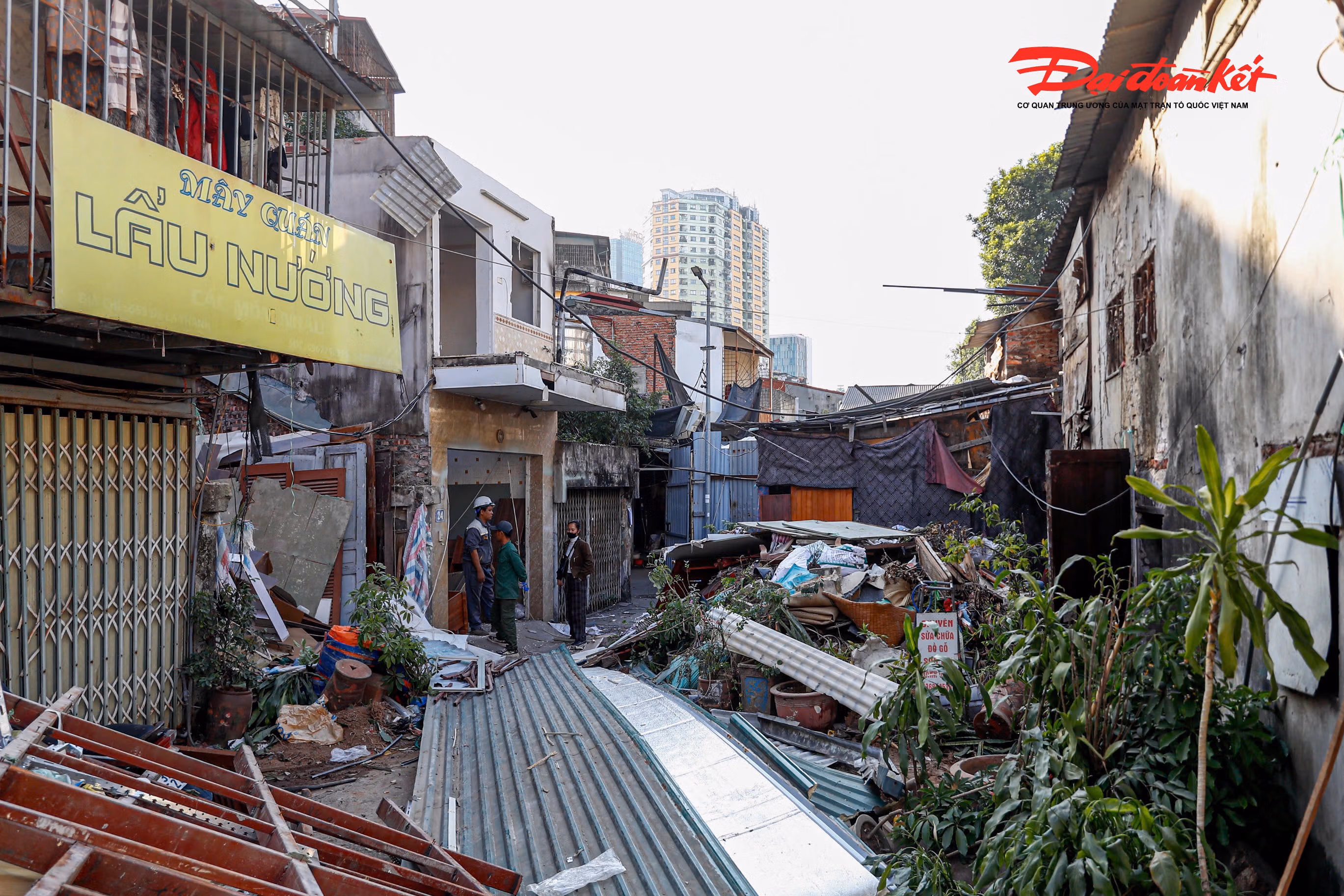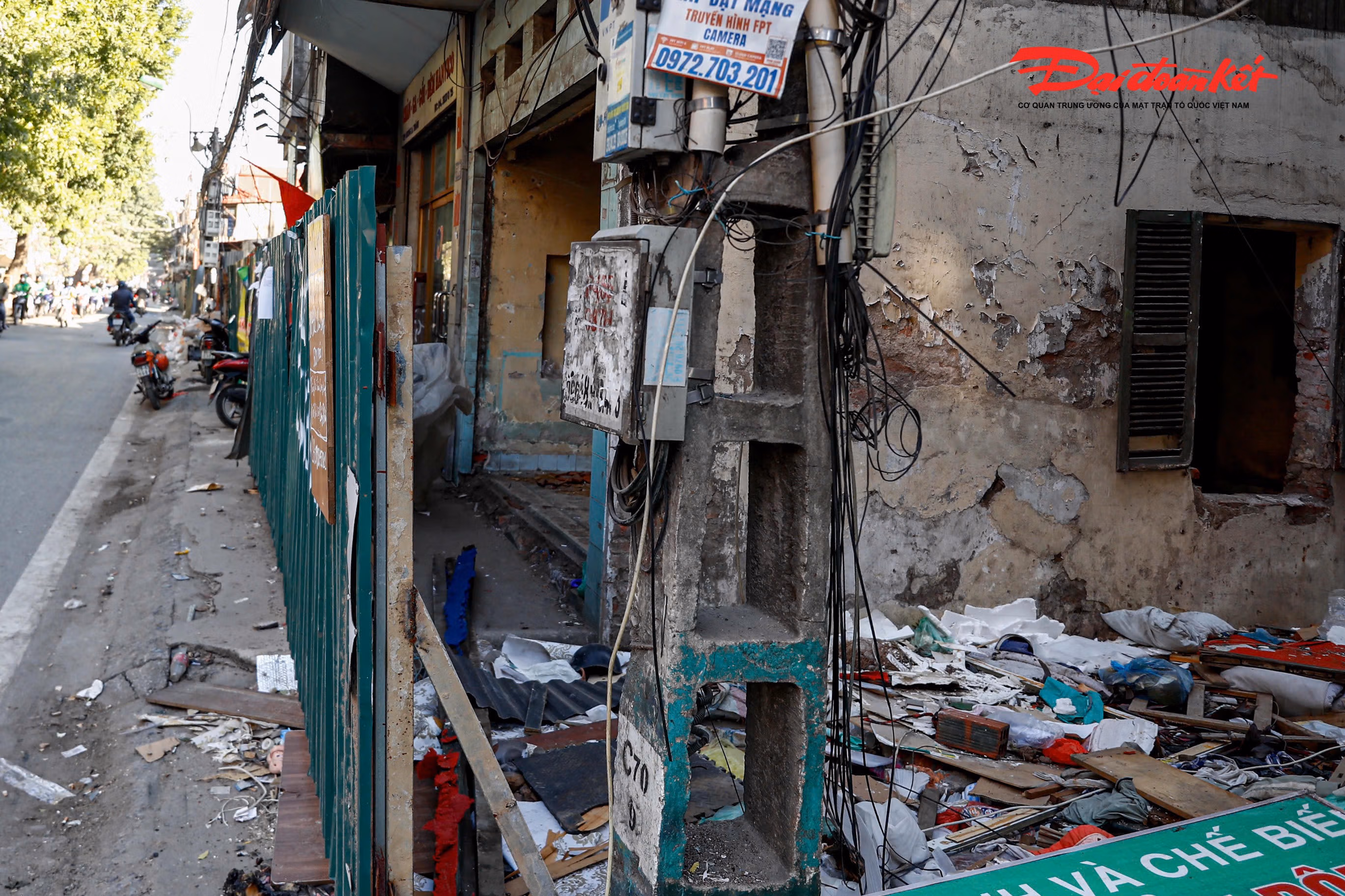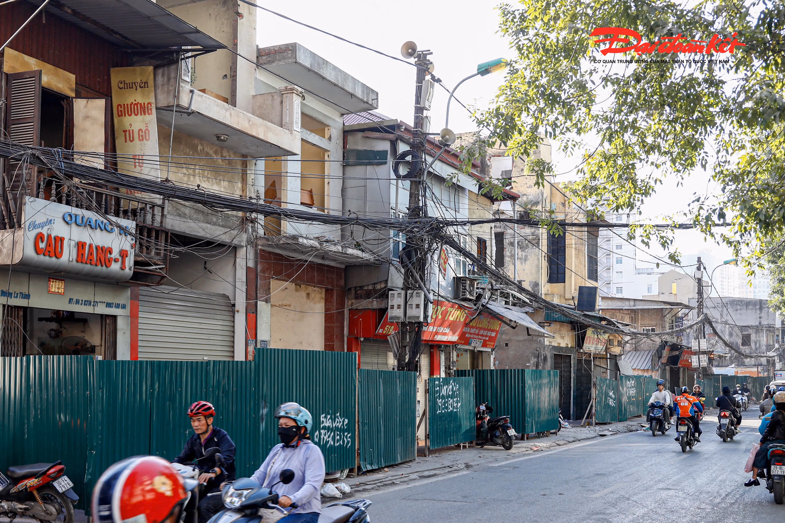 Nhiều cửa hàng trên phố Đê La Thành đã đóng cửa, treo biển chuyển địa điểm để bàn giao mặt bằng cho dự án.