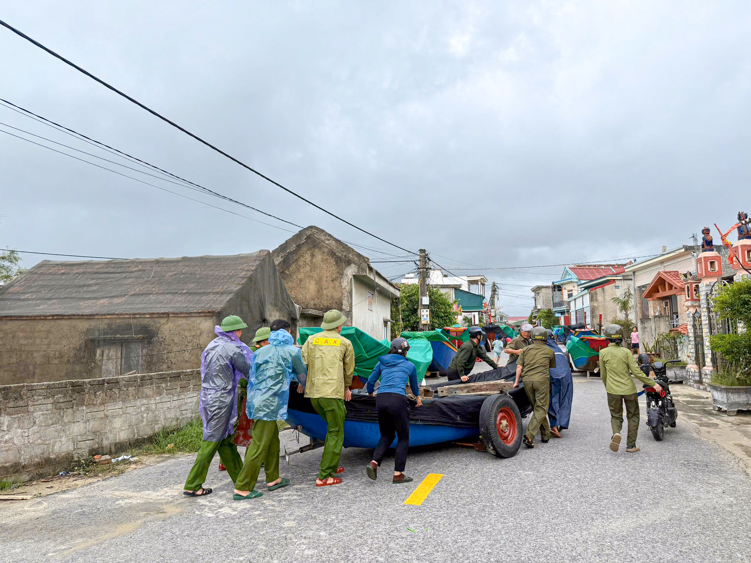 Tại xã Thiên Cầm, nơi có 800 hộ với hơn 1.700 nhân khẩu nằm trong diện ảnh hưởng trực tiếp, chính quyền và lực lượng vũ trang đã xuống từng tổ dân phố vận động, hướng dẫn người dân sơ tán. Các hộ có người già yếu, trẻ nhỏ, người bệnh được đưa đến điểm tập trung; đồng thời, nhà cửa và tài sản của bà con được hỗ trợ chằng néo, gia cố.