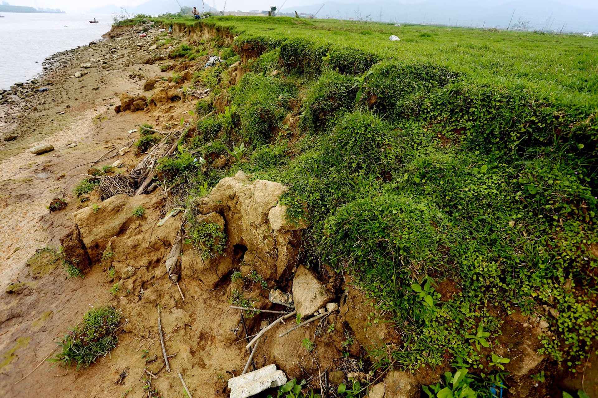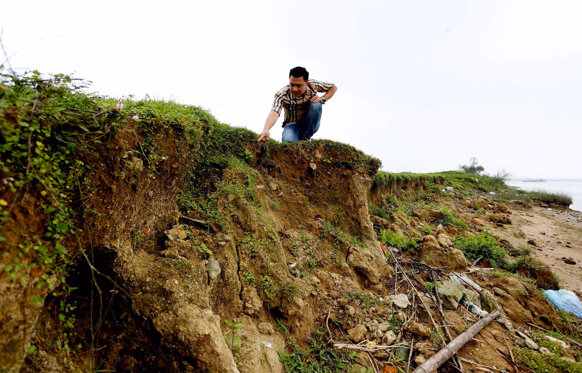 Bờ sông Lam đoạn qua xã Xuân Lam (huyện Nghi Xuân, tỉnh Hà Tĩnh) vẫn liên tục bị sạt lở nặng nề, lòng sông ngày càng lấn sâu vào đất liền và cuốn trôi nhiều diện tích đất nông nghiệp khiến người dân lo lắng.