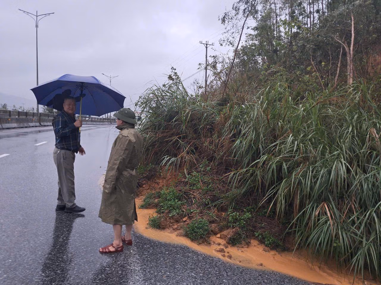 Đoàn đã khẩn trương kiểm tra rà soát các khu vực trũng thấp, điểm có nguy cơ ngập úng cao và các khu vực ven đồi, núi có nguy cơ sạt lở. Qua kiểm tra thực tế, đoàn đã ghi nhận tình trạng ngập lụt cục bộ tại một số tuyến đường và đặc biệt là sự cố sạt lở đất tại vỉa núi bên cạnh Quốc lộ 1A (khu vực qua Đèo Con). Sự cố sạt lở này đã làm đất đá tràn ra mặt đường, gây cản trở việc lưu thông và tiềm ẩn nguy cơ mất an toàn giao thông.