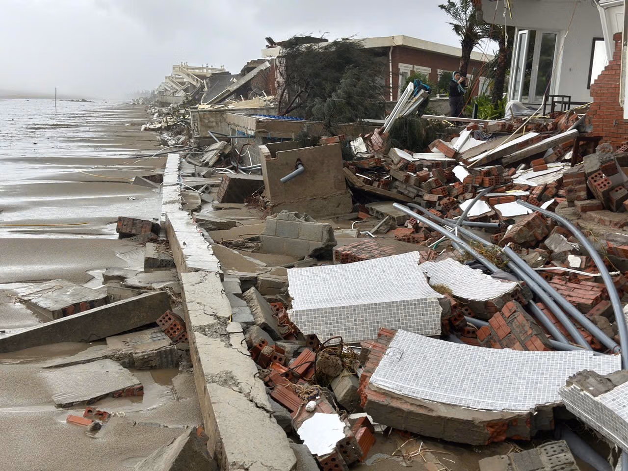 Mỗi căn biệt thự tại đây rộng 180 - 250m2, được thiết kế hiện đại. Nơi đây có 28 căn biệt thự giáp biển, giá trị hàng chục tỷ đồng, tất cả đều bị ảnh hưởng, thiệt hại do bão, nhiều nhà đổ sập hoàn toàn. Một số căn bị sóng dữ khoét sâu vào móng, lộ rõ từng mảng bê tông, cốt thép.