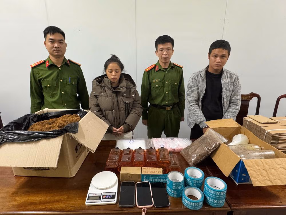 Công an Hà Tĩnh vừa triệt phá đường dây sản xuất, mua bán ma túy Tobaco qua Telegram, bắt giữ Nguyễn Viết Anh Dũng và Lê Thị Mạo cùng lượng lớn tang vật.