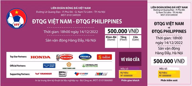 Tin từ Liên đoàn Bóng đá Việt Nam, theo kế hoạch, 18h00 ngày 14/12/2022 tại sân vận động Hàng Đẫy - Thành phố Hà Nội sẽ diễn ra trận giao hữu quốc tế giữa đội tuyển Việt Nam và đội tuyển Philippines. Chuẩn bị cho trận đấu, Ban tổ chức phát hành vé trực tiếp tại hai địa điểm. Địa điểm thứ nhất là Liên đoàn Bóng đá Việt Nam (Lê Quang Đạo. Phú Đô, Hà Nội). Thời gian mở bán từ ngày 9/12/2022 (thứ Sáu). Các khung giờ từ 8h45 đến 11h45 (buổi sáng) và từ 14h00 đến 16h45 (buổi chiều).