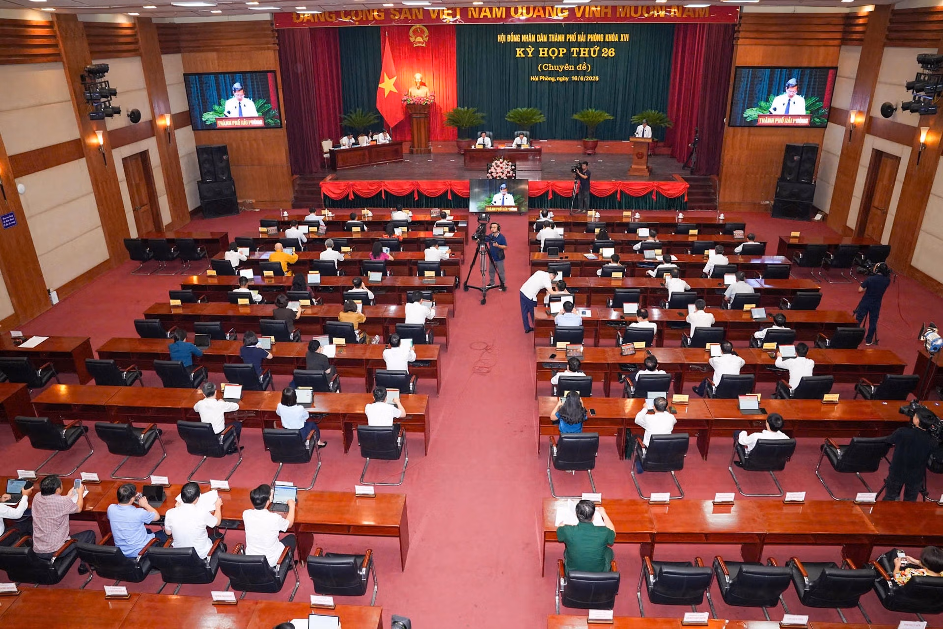 Tại kỳ họp thứ 26 (kì họp chuyên đề) khóa XVI, nhiệm kỳ 2021 - 2026 được tổ chức chiều 16/6, các đại biểu HĐND TP Hải Phòng đã thông qua Nghị quyết về bãi bỏ Nghị quyết số 01/2025/NQ-HĐND ngày 20/2/2025 của HĐND thành phố về chính sách hỗ trợ thêm đối với cán bộ, công chức, viên chức, người lao động thuộc thành phố quản lý trong thực hiện sắp xếp tổ chức bộ máy, đơn vị hành chính của hệ thống chính trị tại thành phố.