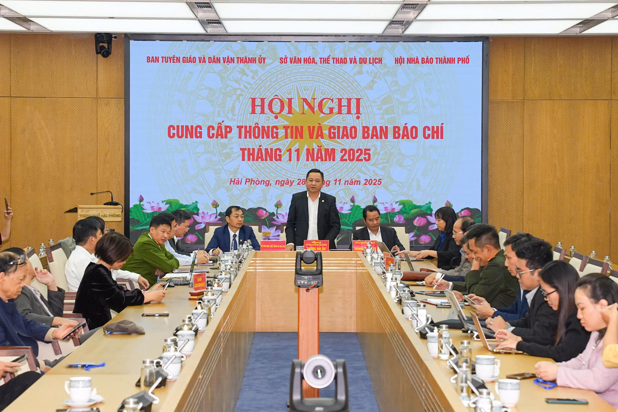 Chiều 28/11, Ban Tuyên giáo và Dân vận Thành ủy; Sở Văn hóa - Thể thao và Du lịch, Hội Nhà báo TP Hải Phòng tổ chức hội nghị cung cấp thông tin và giao ban báo chí tháng 11 năm 2025.