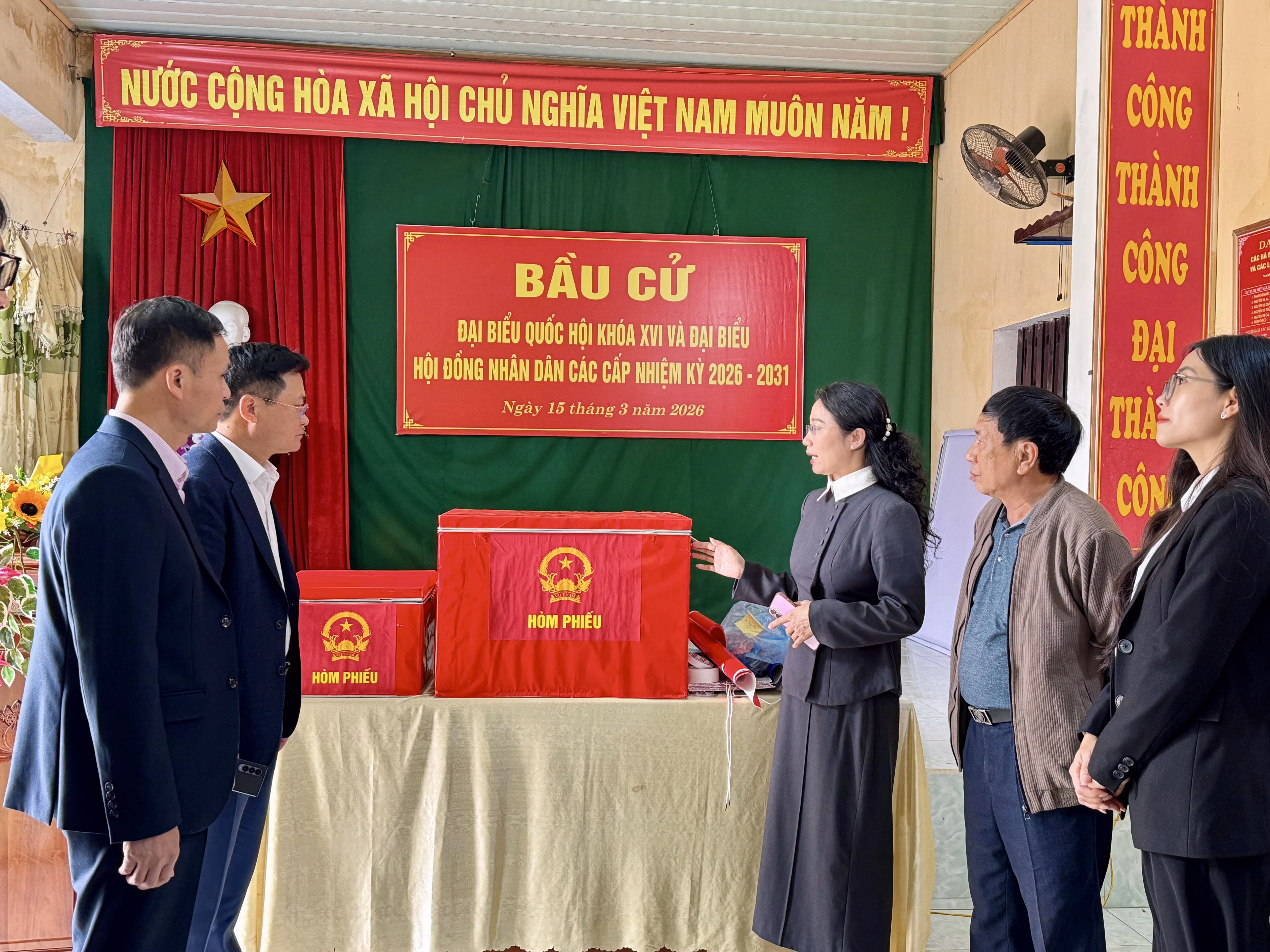 Bên cạnh đó, công tác hậu cần cũng được chuẩn bị chu đáo, từ con dấu, thẻ cử tri, tài liệu, biểu mẫu đến việc trang trí, khánh tiết tại các khu vực bỏ phiếu. Tất cả đều được thực hiện nghiêm túc, đúng quy định.