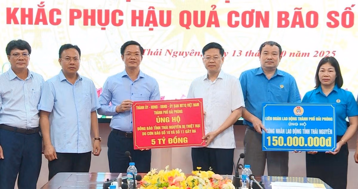Tại tỉnh Thái Nguyên, thay mặt Đảng bộ, chính quyền và nhân dân TP Hải Phòng, ông Phạm Văn Lập trao 5 tỷ đồng từ nguồn Quỹ Cứu trợ thành phố, gửi gắm tình cảm sẻ chia, động viên nhân dân địa phương sớm vượt qua khó khăn, khôi phục sản xuất, ổn định cuộc sống. Cùng dịp này, Liên đoàn Lao động TP Hải Phòng cũng đã trao 150 triệu đồng hỗ trợ công nhân, người lao động tại Thái Nguyên bị ảnh hưởng bởi bão lũ.