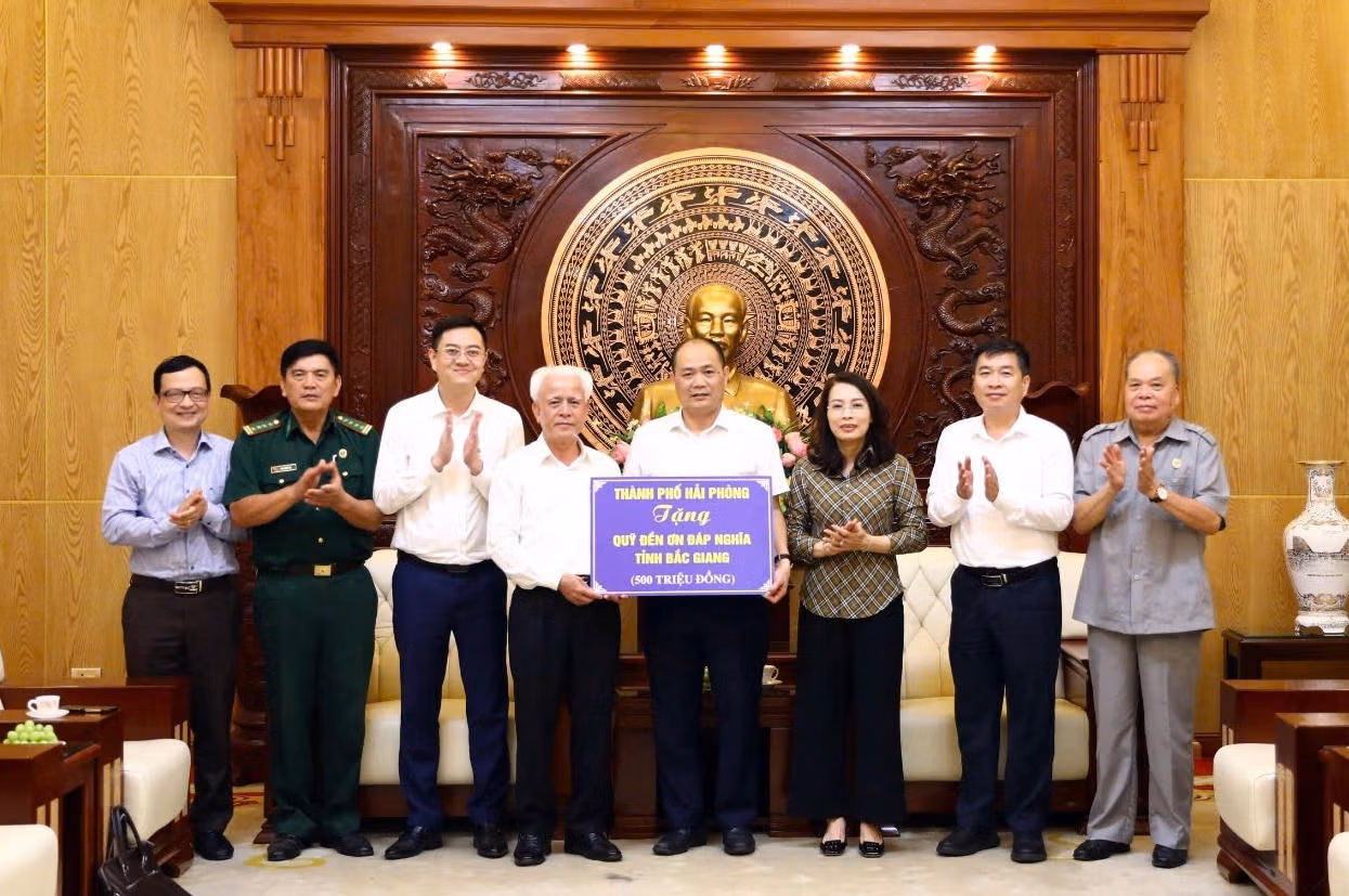 Nhân dịp này, ông Nguyễn Đình Chuyến, Ủy viên Ban Thường vụ Thành ủy, Chủ nhiệm Ủy ban Kiểm tra Thành ủy Hải Phòng đã trao tặng nhiều phần quà tới các địa phương và Quỹ đền ơn đáp nghĩa tỉnh Bắc Giang.