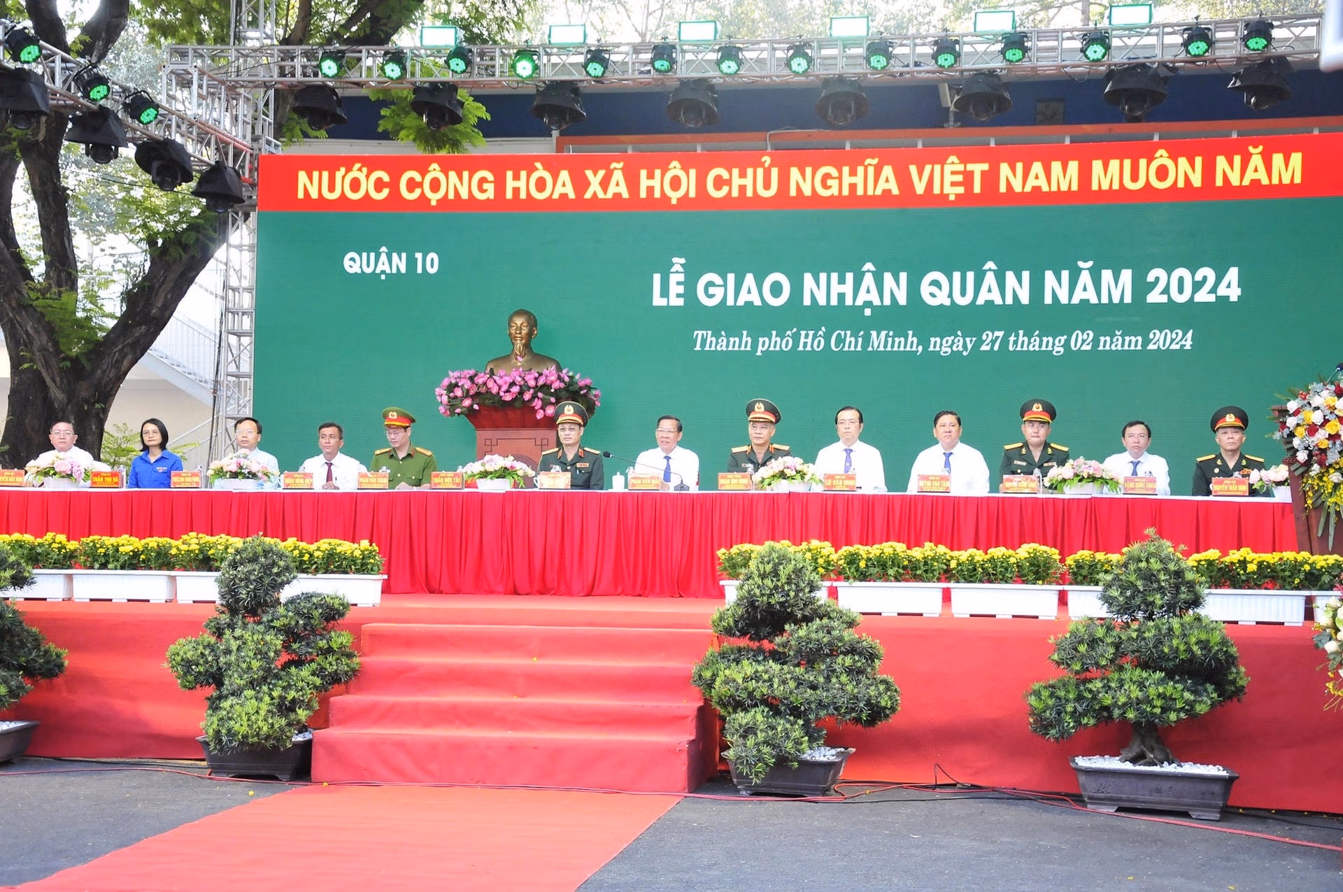 Lễ giao nhận quân điểm của TP HCM được tổ chức tại Trường Đại học Bách khoa (Đại học Quốc gia TP HCM), thực hiện giao quân của quận 10 và các quận 5, 6, 8, 11, Tân Phú, Bình Thạnh, Phú Nhuận, Gò Vấp, Bình Tân, huyện Hóc Môn.