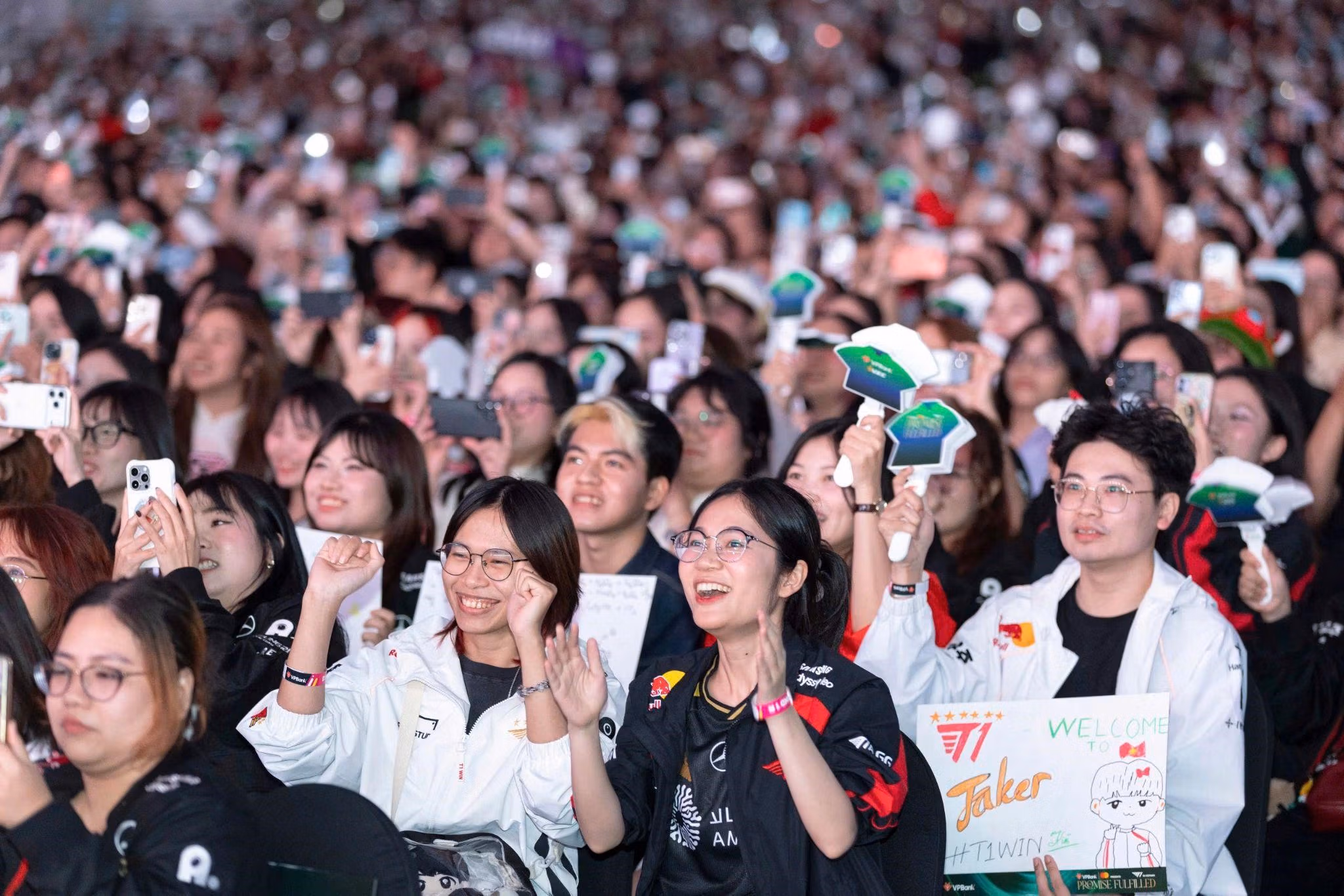 Sự kiện “VPBank Presents T1 in Vietnam: The Promise Fulfilled” có sự xuất hiện của T1 diễn ra ngày 21/12 tại Trung tâm Triển lãm Việt Nam (VEC) đã biến Hà Nội thành tâm điểm của cộng đồng LMHT. Khán phòng sôi động với hàng nghìn khán giả cuồng nhiệt chờ đợi T1 bước ra sân khấu. Khoảnh khắc Faker chào khán giả bằng tiếng Việt là điểm nhấn cảm xúc, ghi dấu trong lòng người hâm mộ sau 6 năm chờ đợi được gặp thần tượng tận mắt.