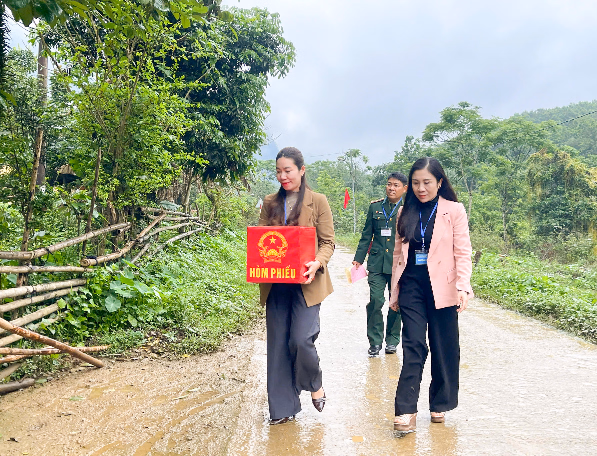 Con đường dẫn vào thung lũng Rục Làn quanh co, uốn lượn giữa những dãy núi trùng điệp. Sáng sớm ngày 15/3, từng tốp bà con người Chứt, người Kinh từ các bản Ón, Yên Hợp, Mò O Ồ Ồ (xã Kim Phú) tay cầm thẻ cử tri, rộn ràng đến điểm bỏ phiếu. Không khí ngày hội bầu cử lan tỏa khắp bản làng vùng cao.