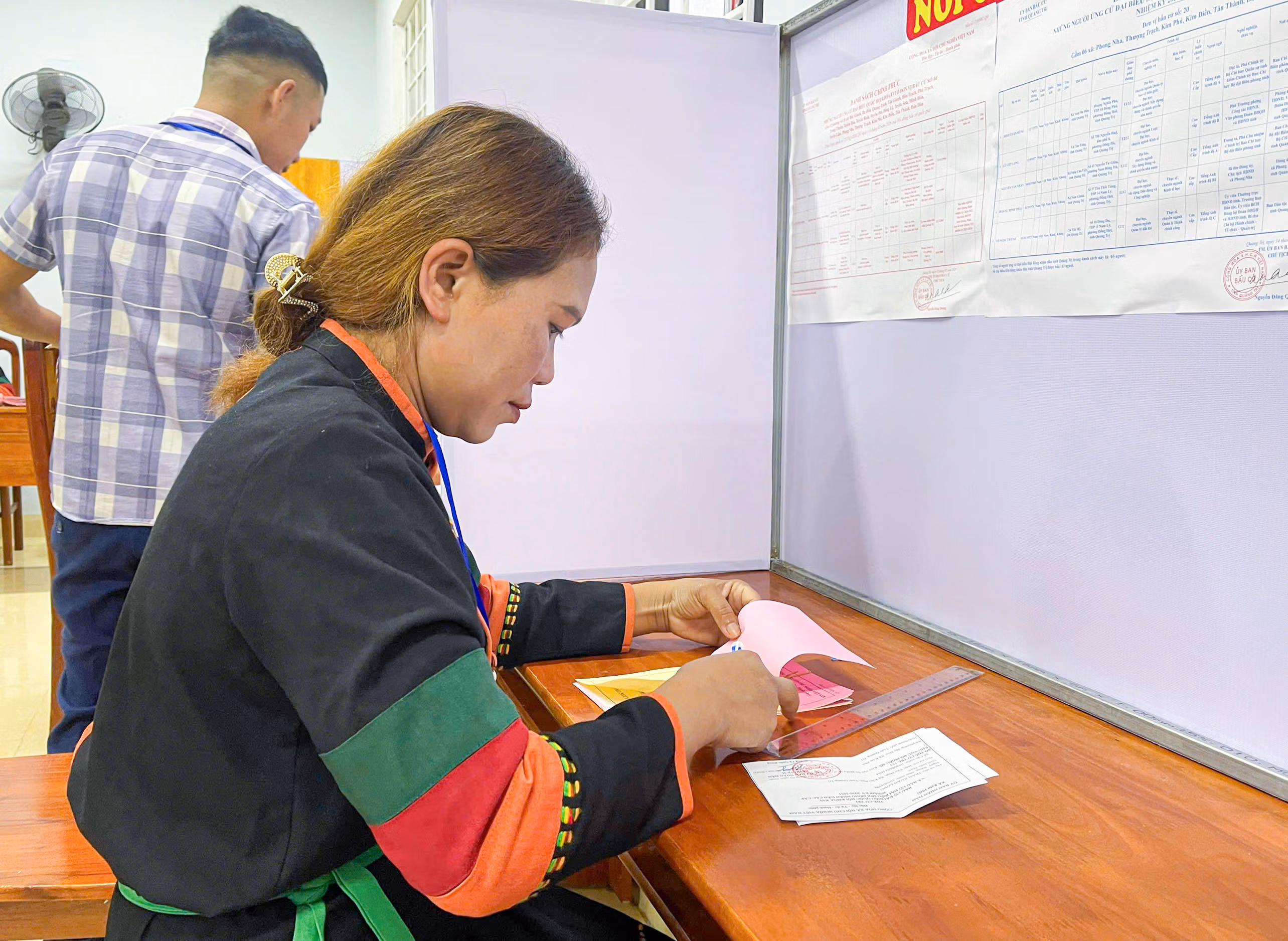 Những ngày trước đó, Hằng đã đến điểm niêm yết danh sách ứng cử viên để tìm hiểu thông tin. Với cô gái trẻ, lá phiếu không chỉ là quyền công dân mà còn là niềm hy vọng về sự đổi thay của bản làng.