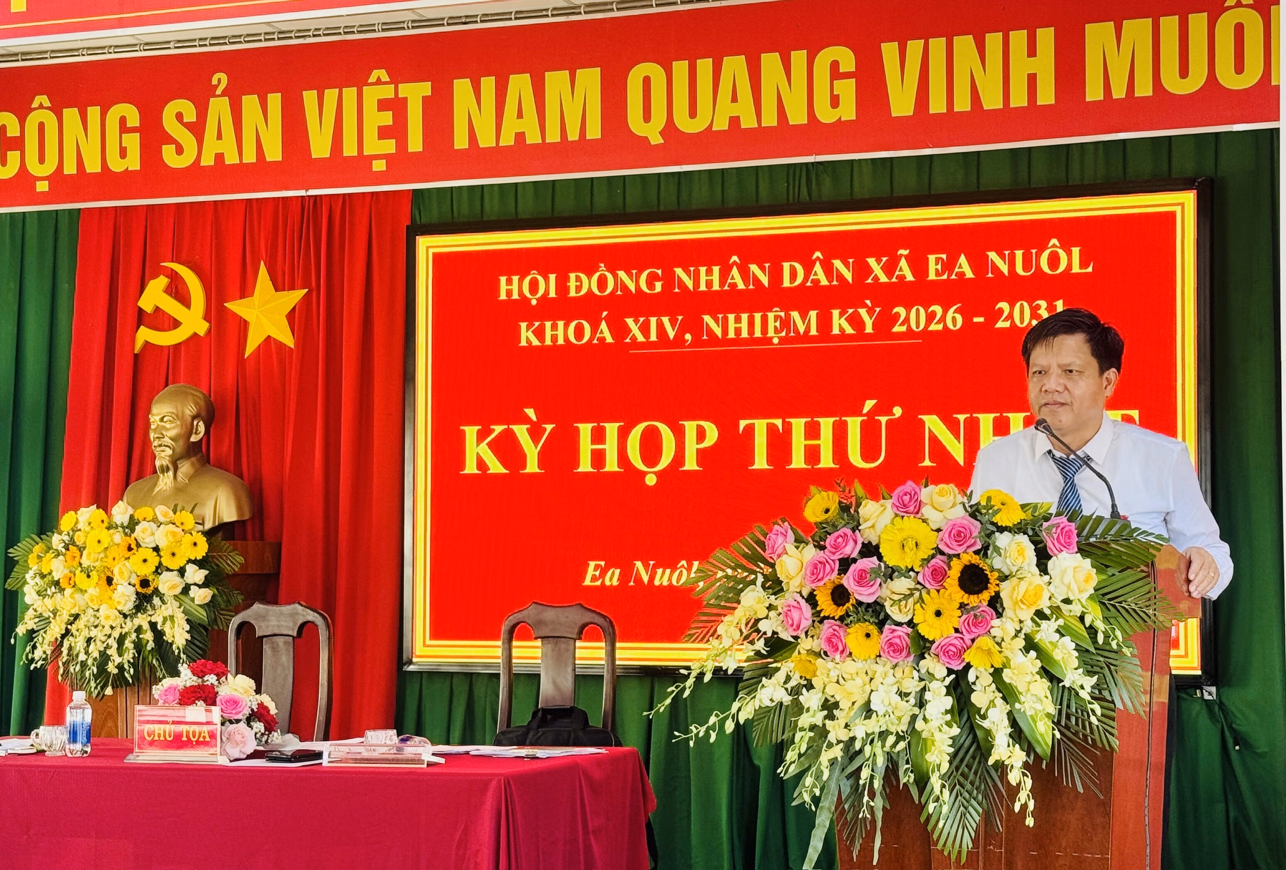 Chiều 26/3, tại xã Ea Nuôl, tỉnh Đắk Lắk, Kỳ họp thứ nhất Hội đồng nhân dân (HĐND) xã khóa XIV, nhiệm kỳ 2026 – 2031 đã được tổ chức trong không khí trang nghiêm, dân chủ và đầy kỳ vọng. Đây không chỉ là kỳ họp mang tính thủ tục kiện toàn bộ máy, mà còn là dấu mốc chính trị quan trọng, mở ra một nhiệm kỳ mới với nhiều khát vọng phát triển và trách nhiệm trước nhân dân.