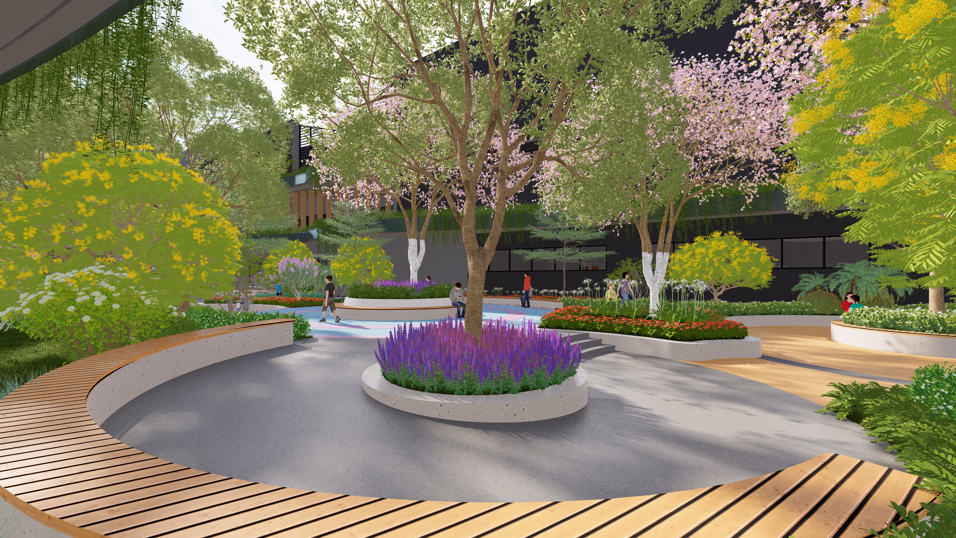 Khu tĩnh tâm (Quiet Garden/Calm Zone) được thiết kế như một công cụ điều phối cảm xúc ngoài trời, sử dụng cây xanh, vật liệu tự nhiên và các góc ngồi kín đáo như những “điểm neo” an toàn, hỗ trợ học sinh khi lo âu hoặc quá tải giác quan.