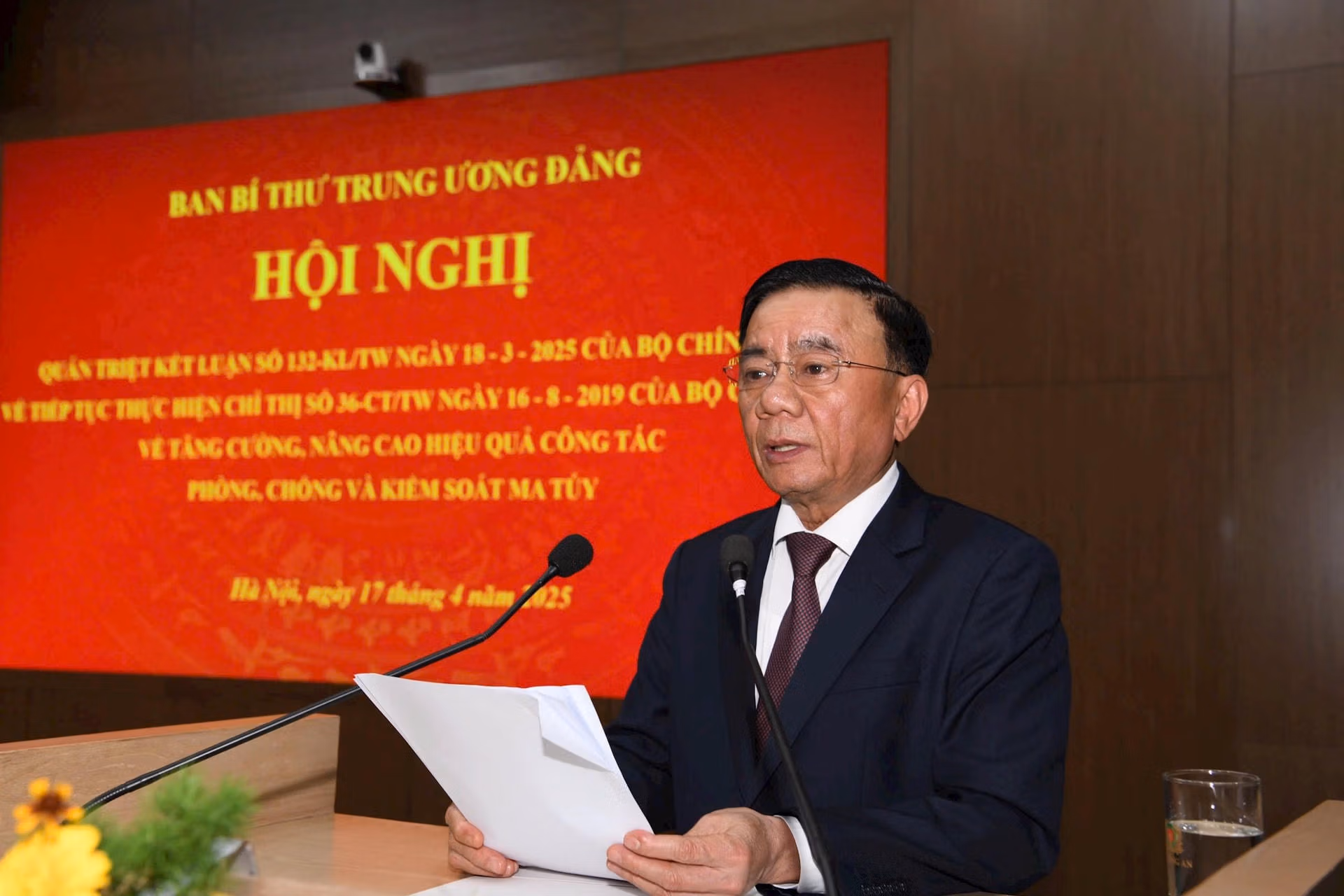 Ngày 17/4, Ban Bí thư Trung ương Đảng tổ chức hội nghị quán triệt Kết luận số 132 – KL/TW ngày 18/3/2025 của Bộ Chính trị về tiếp tục thực hiện Chỉ thị số 36-CT/TW ngày 16/8/2019 của Bộ Chính trị về tăng cường, nâng cao hiệu quả công tác phòng, chống và kiểm soát ma tuý.