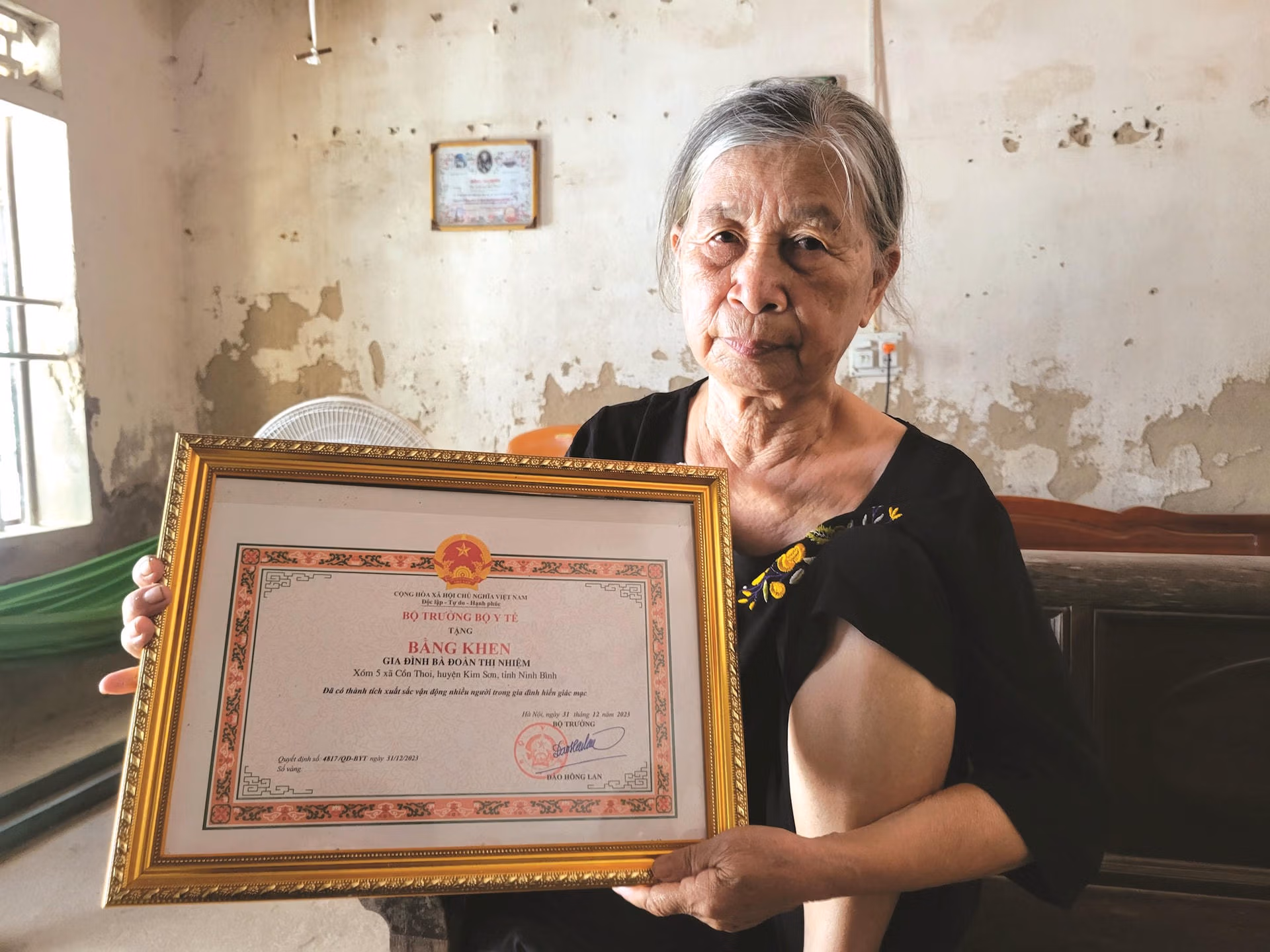 Gia đình bà Đoàn Thị Nhiệm (75 tuổi, trú xóm 5A, xã Cồn Thoi) khá nổi tiếng ở địa phương với "thành tích" nổi bật là có nhiều người đã hiến giác mạc thành công, trong đó, có thể kể đến ông Đinh Văn Thương - chồng bà, người hiến giác mạc năm 2009; ông Đinh Văn Dương - em trai ông Thương; anh Đinh Văn Quảng - con trai bà Nhiệm; bố mẹ bà Nhiệm - 2 người đã hiến giác mạc năm 2010; 2 em trai của bà Nhiệm, cũng hiến giác mạc sau khi mất… Ngay chính bản thân bà, cũng đã đăng ký hiến tặng giác mạc từ năm 2010.