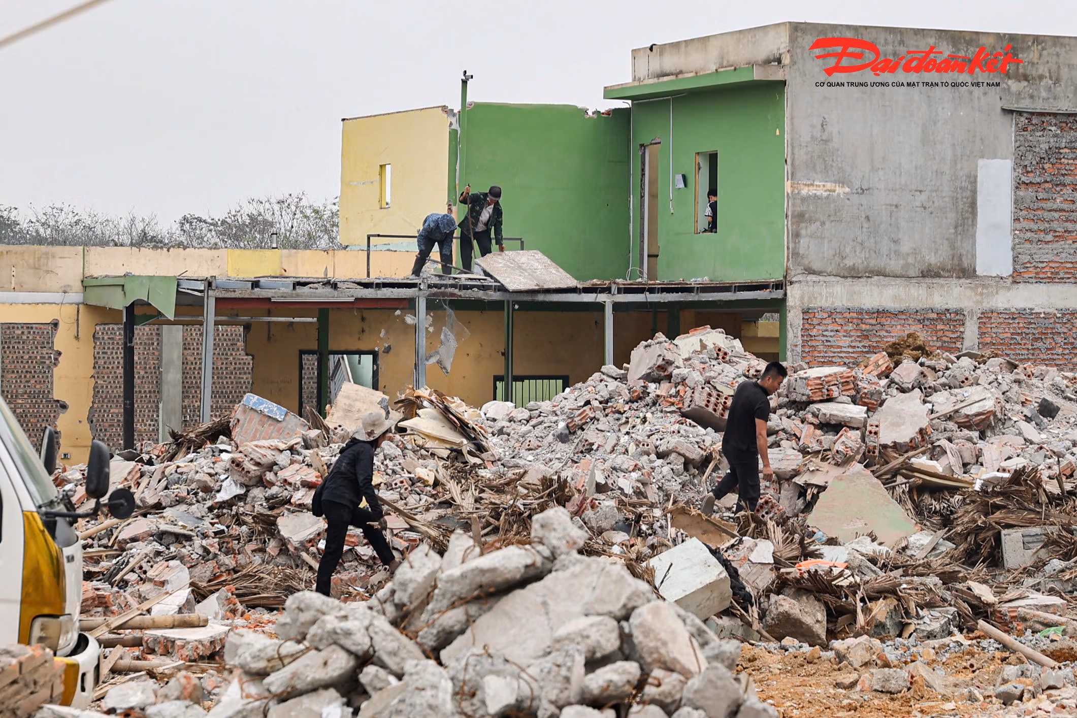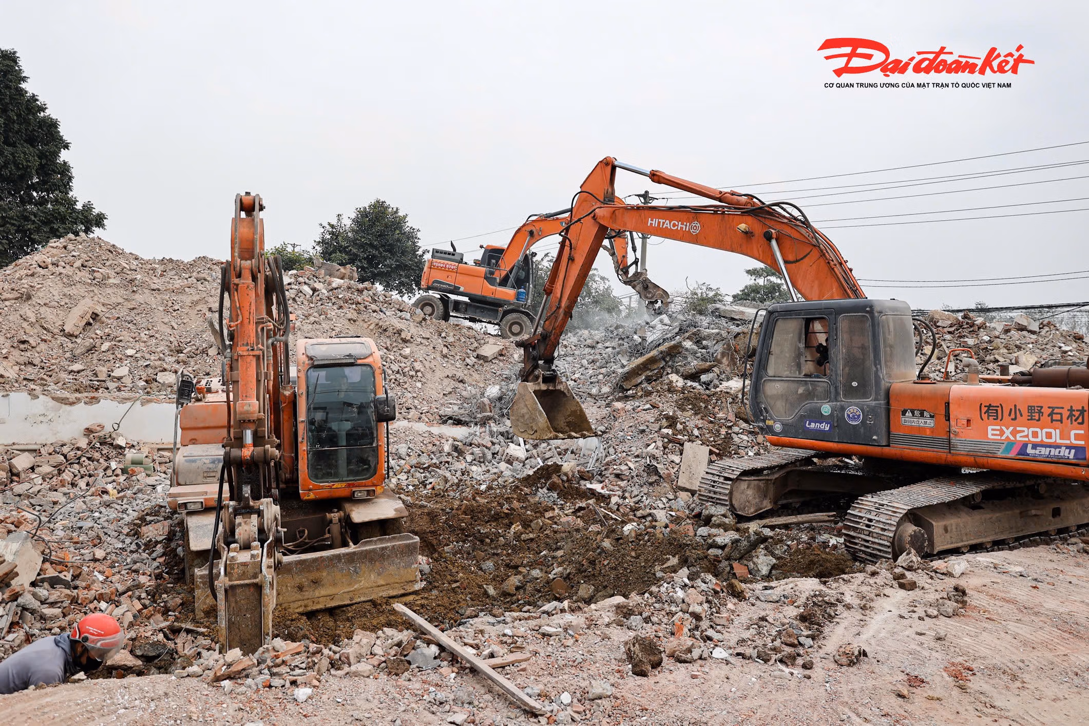 Máy móc cùng lực lượng công nhân đang được huy động, khẩn trương triển khai công tác phá dỡ, phấn đấu sớm hoàn tất việc bàn giao mặt bằng, đáp ứng tiến độ thi công dự án.
