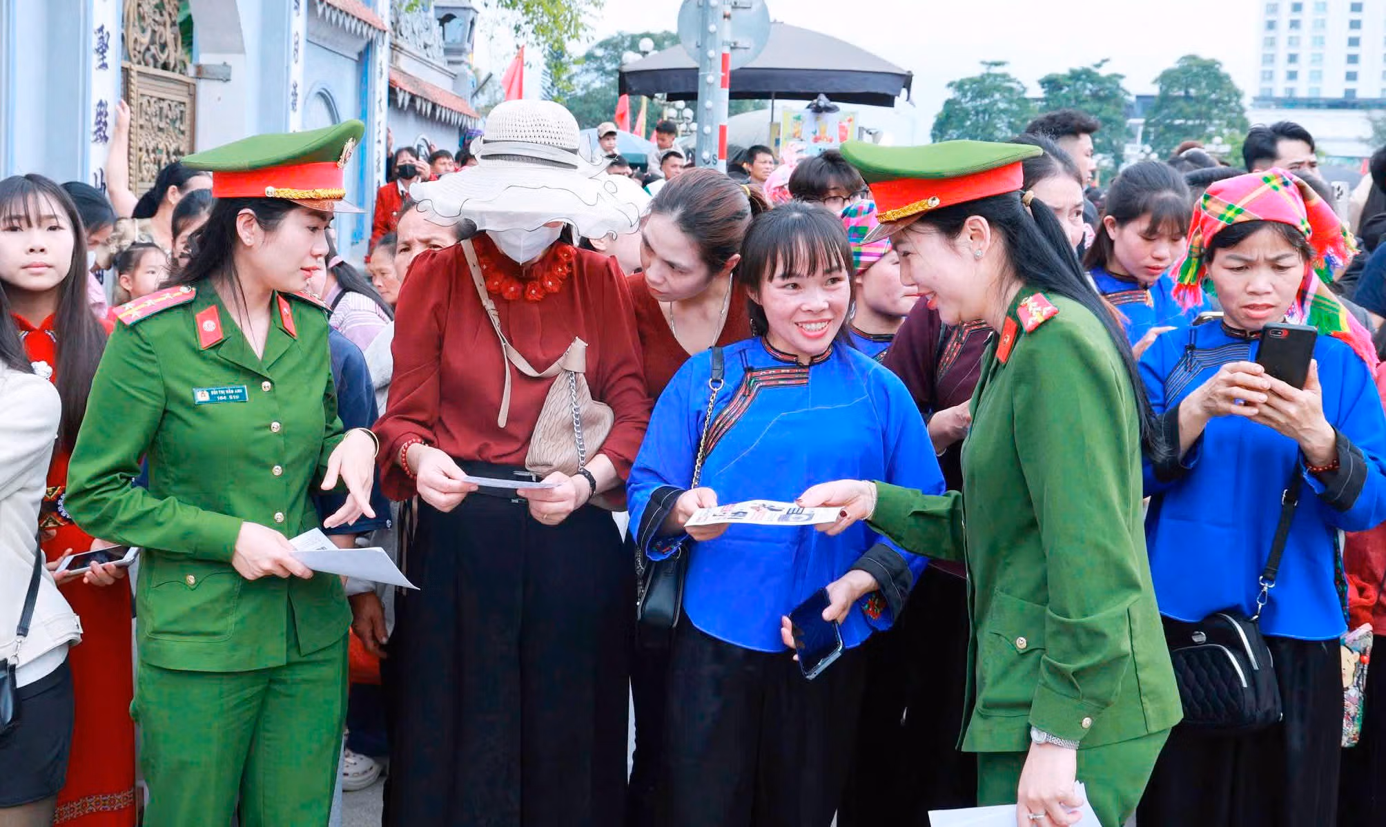 Các chiến sĩ công an hỗ trợ người dân, đảm bảo an toàn xuyên suốt các lễ hội xuân năm 2026 trên địa bàn tỉnh Lạng Sơn.