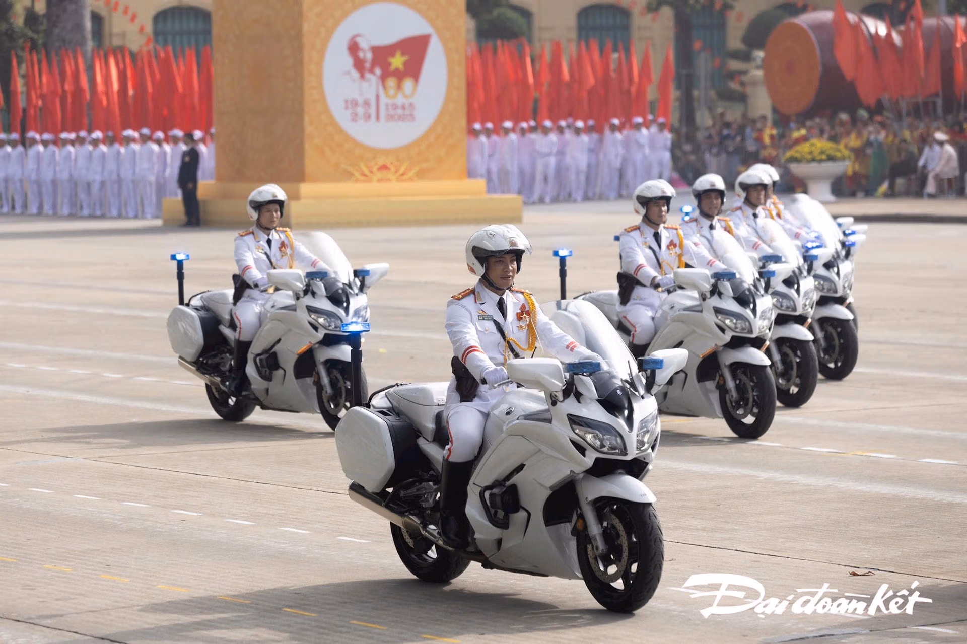 Khối Công an Nhân dân Việt Nam xuất hiện tại Lễ kỷ niệm, diễu binh, diễu hành 80 năm Quốc khánh 2/9 với đội hình chuyên nghiệp, thể hiện được sức mạnh tổng hợp, dũng cảm và kiên cường.