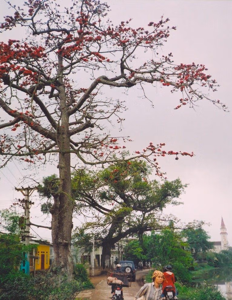 Tứ thời bát tiết xoay vòng, mùa xuân tới là “cái già nua” của cây biến mất, từ những cành khẳng khiu bắt đầu nhú lên vài ba chiếc búp đầu tiên, rồi hàng ngàn búp nõn như ngàn ánh nến xanh bật lên, lóng lánh lung linh trong nắng, đón những đàn chào mào, sáo sậu, sáo đen… lũ lượt bay về. Vào một ngày cuối tháng ba nắng vàng mênh mang, nhìn lên đã thấy những bông hoa gạo đỏ rực tựa bó đuốc khổng lồ cháy giữa trời xanh.