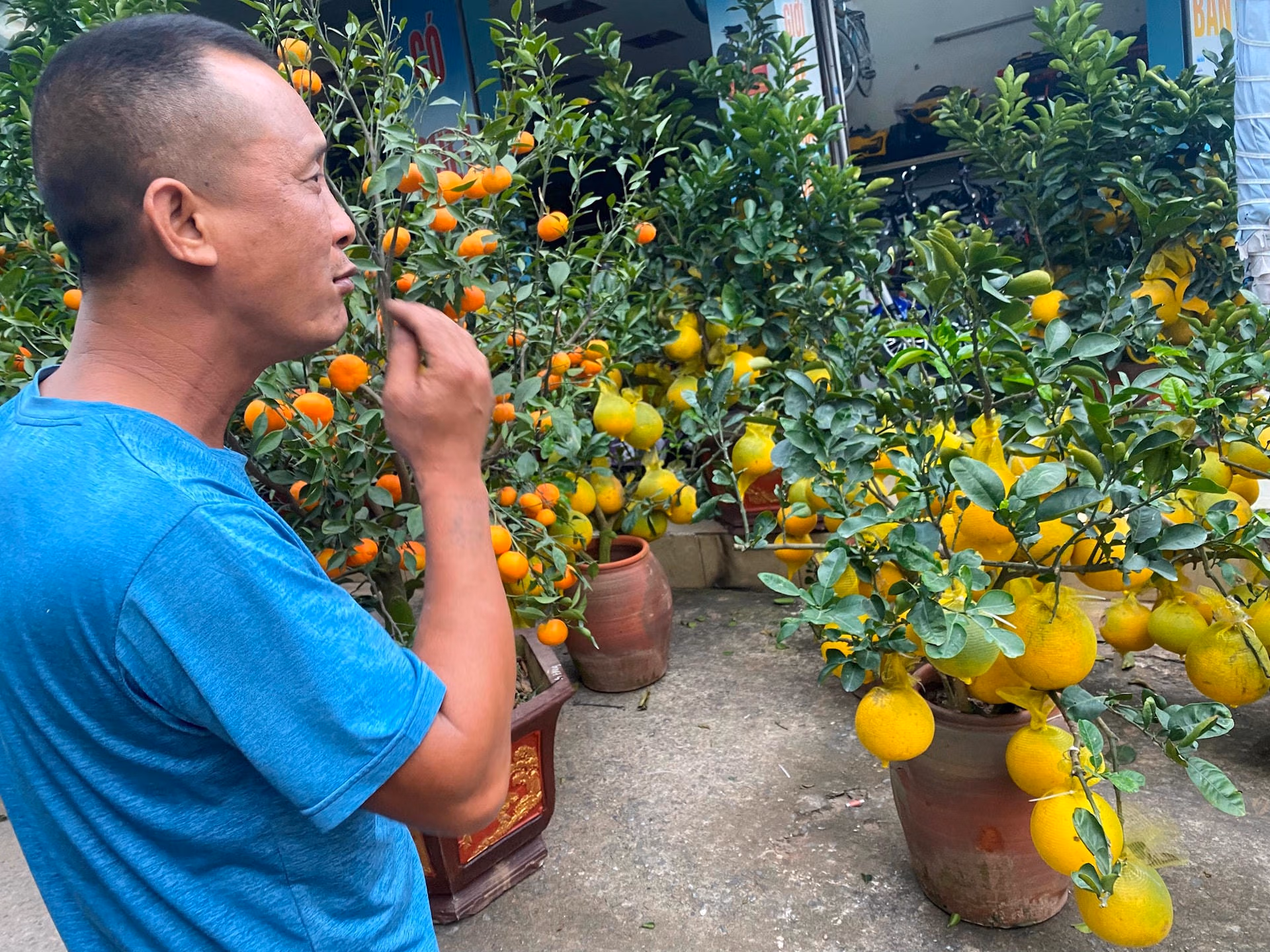 Anh Trần Văn Đông (54 tuổi) - chủ một vựa bán bưởi vàng ở đường số 7 (quận Bình Tân) cho biết, anh mới nhập hơn 40 chậu bưởi và cam từ quê nhà ở Tiên Lữ (Hưng Yên) vào để bán. “Năm nào tôi cũng nhập bưởi và cam để bán dịp Tết. Có năm nhập tới 400 chậu các loại nhưng năm nay chắc chỉ nhập khoảng 200 chậu thôi. Đợt này chỉ vào hàng nhỏ, vài triệu đồng mỗi chậu. Mình cũng phải nghe ngóng xem nhu cầu thị trường tết năm nay ra sao đã” - anh Đông nói và cho biết, do hàng vừa mới vào nên chưa có khách mua nhưng cũng đã có một số người quen đặt trước, hầu hết người dân sẽ mua hàng vào những ngày cận Tết.