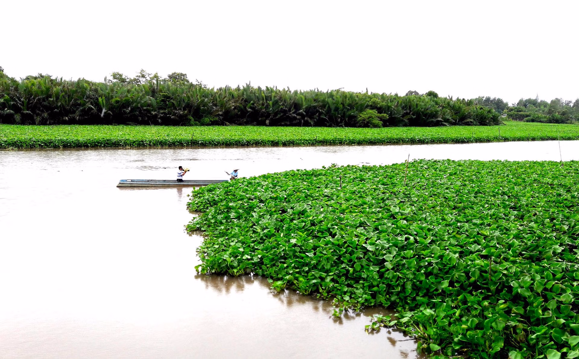Chị Lê Thị Út Chính, ở ấp Ninh Định, xã Ninh Hòa, tận dụng bãi sông sau nhà khoanh nuôi 5.000 mét vuông lục bình. Với diện tích này, mỗi tháng gia đình thu hoạch, phơi khô bán được 20 triệu đồng.