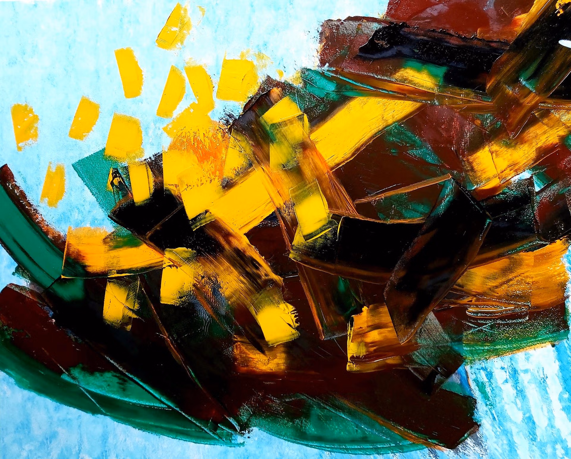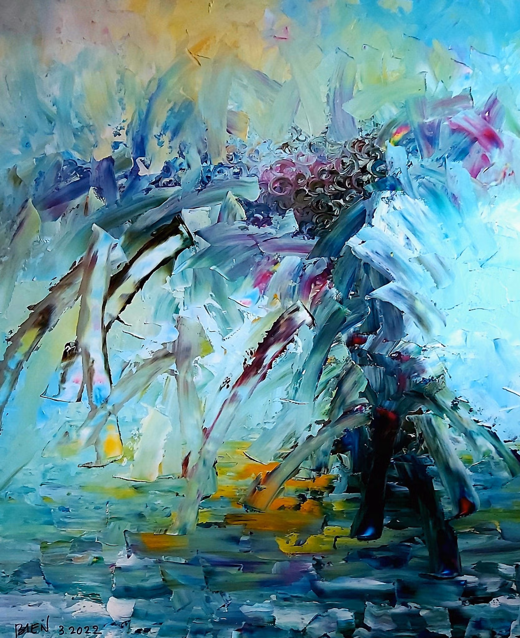 Sắc độ tươi mới mềm mại hòa sắc trong nỗi xao xác tâm hồn. Và tôi đã bị chìm ngập trong không gian trừu tượng đầy đam mê của tranh Võ Trịnh Biện.